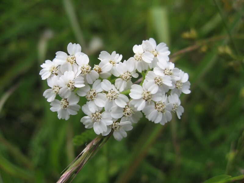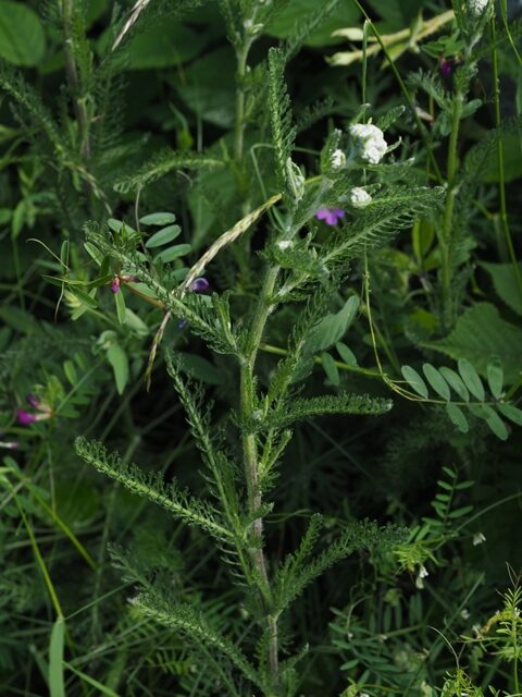 És una herba perenne de 20-70 cm, polimorfa, erecta, poc ramificada, ± pubescent o pilosa, i amb rizoma horitzontal i tija simple laxament foliosa. Té les fulles molt dividides, les basals de 10-25 cm de longitud, peciolades i lanceolades, i les caulinars estretament oblongues més petites, curtament peciolades o sèssils, totes molt dividides amb més de 15 parells de segments primaris ± imbricats. Els capítols es reuneixen en una inflorescència en corimbe dens, tenen l’involucre sub-cilíndric amb les bràctees externes estretament ovato-lanceoladas i 4-5 flors externes ligulades amb el limbe blanc rarament de color de rosa i patent; les flors internes són més nombroses i tubulars. Els fruits són en aqueni i d’1,4-2,2 mm.
