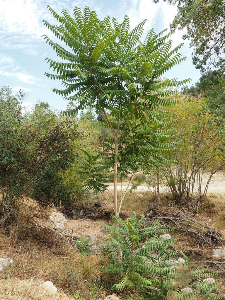 - Ecologia: és un arbre exòtic, originari de la Xina, plantat en jardins i en talussos de carreteres, ja que fixa bé les terres toves i soltes. De les plantacions s’ha estès ràpidament ja que es reprodueix amb molta facilitat al treure nombrosos rebrots de les arrels, fins i tot a força metres de l’arbre. Fins en alguns indrets és considerat com una espècie invasora. –