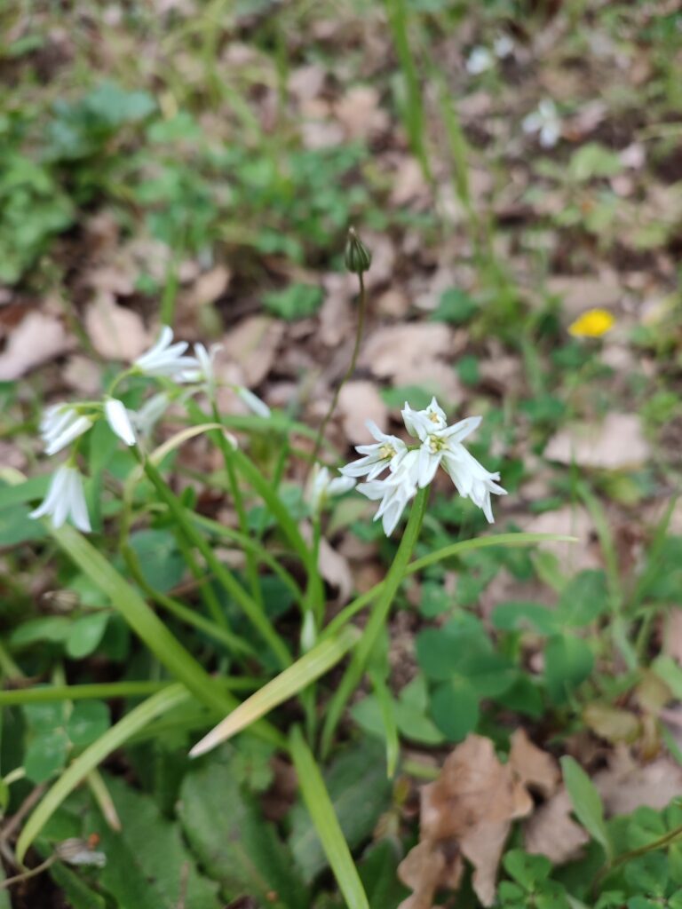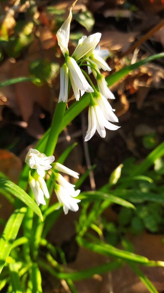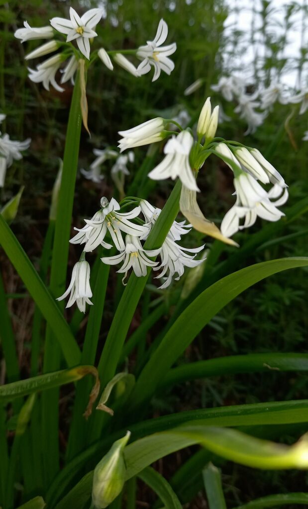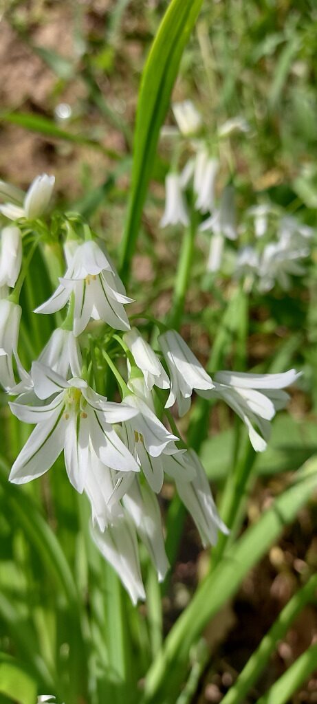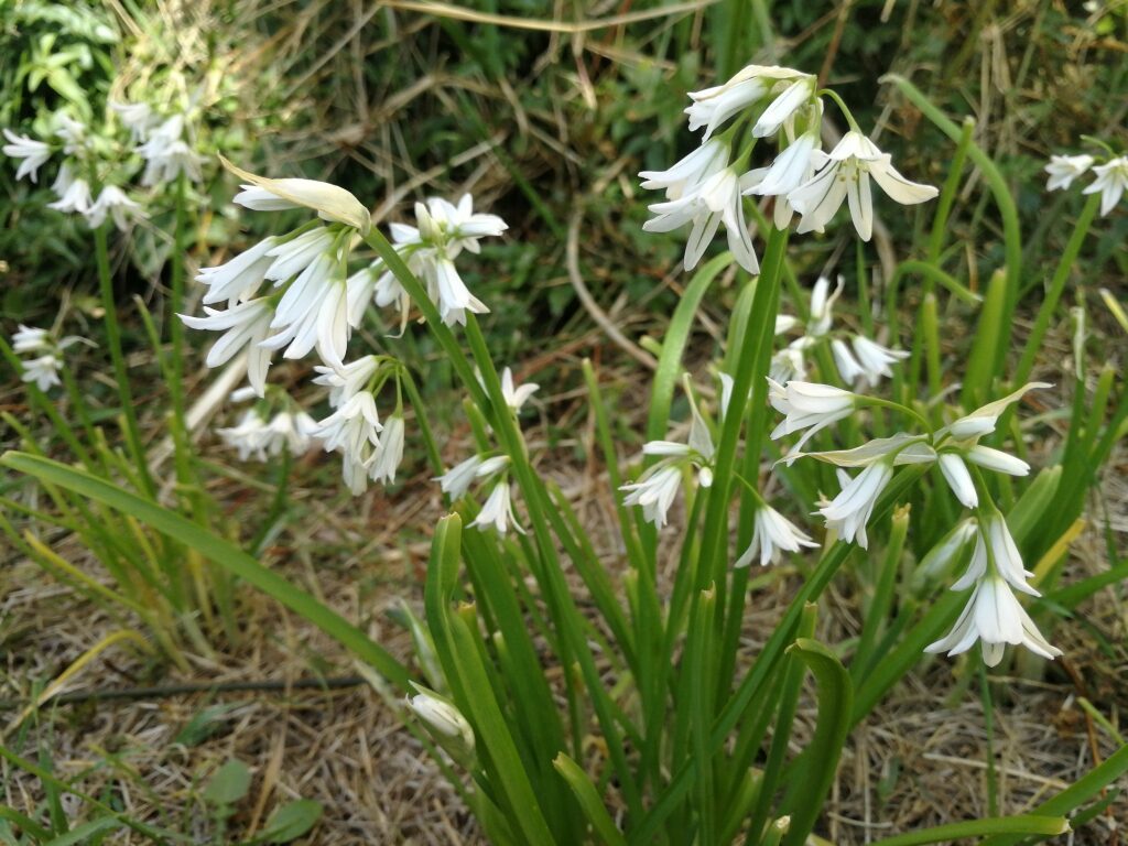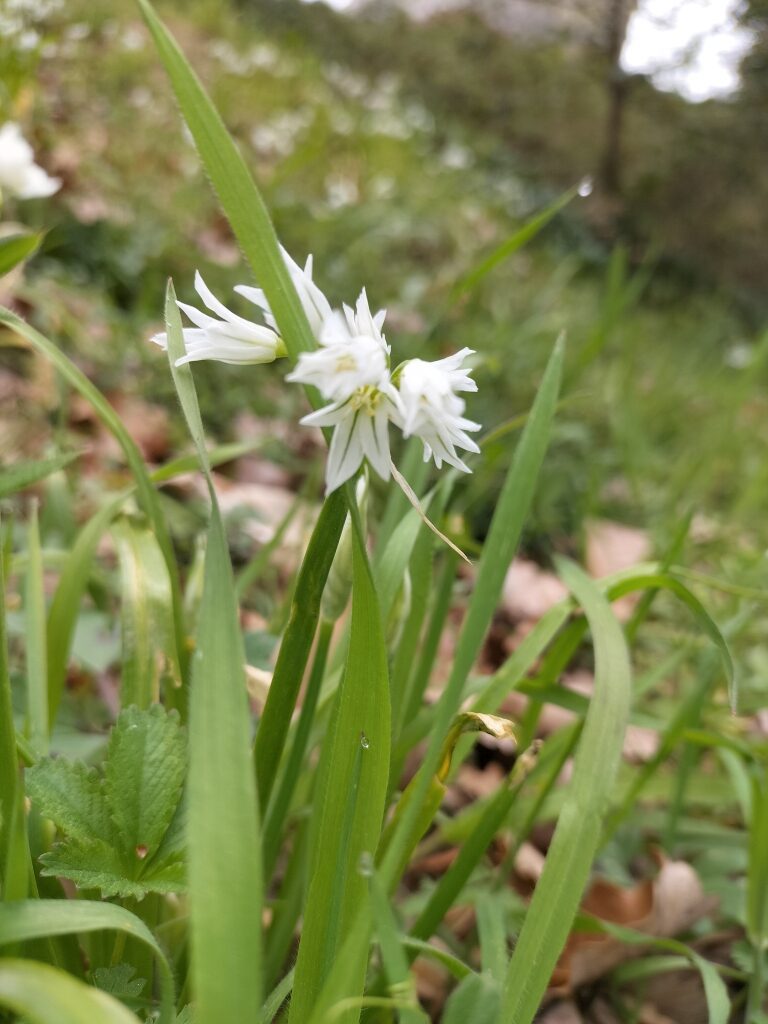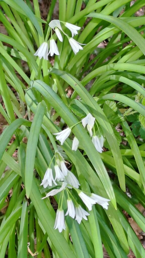 És una herba bulbosa amb una forta olor d’all. El bulb és ovoide, de 13-28 mm i 2-3 bulbils a la base. Les tiges tenen secció triangular amb tres cantells molt aguts. Les fulles són planes, de fins a 40 cm de llargada, pràcticament basals, disposades totes al terç inferior de la tija i més o menys suculentes. La inflorescència és en forma d’umbel·la i les flors al capdamunt d’una tija laxa amb 3-15 flors pedicel·lades i finalment pèndules. Tenen 6 tèpals blancs, lanceolats i aguts, 6 estams més curts que els tèpals i soldats a la base d’aquests, i l’estigma trífid. La càpsula porta 1-2 granes per compartiment. Floreix a finals de l’hivern i a la primavera.