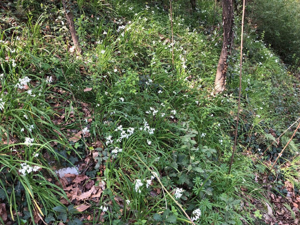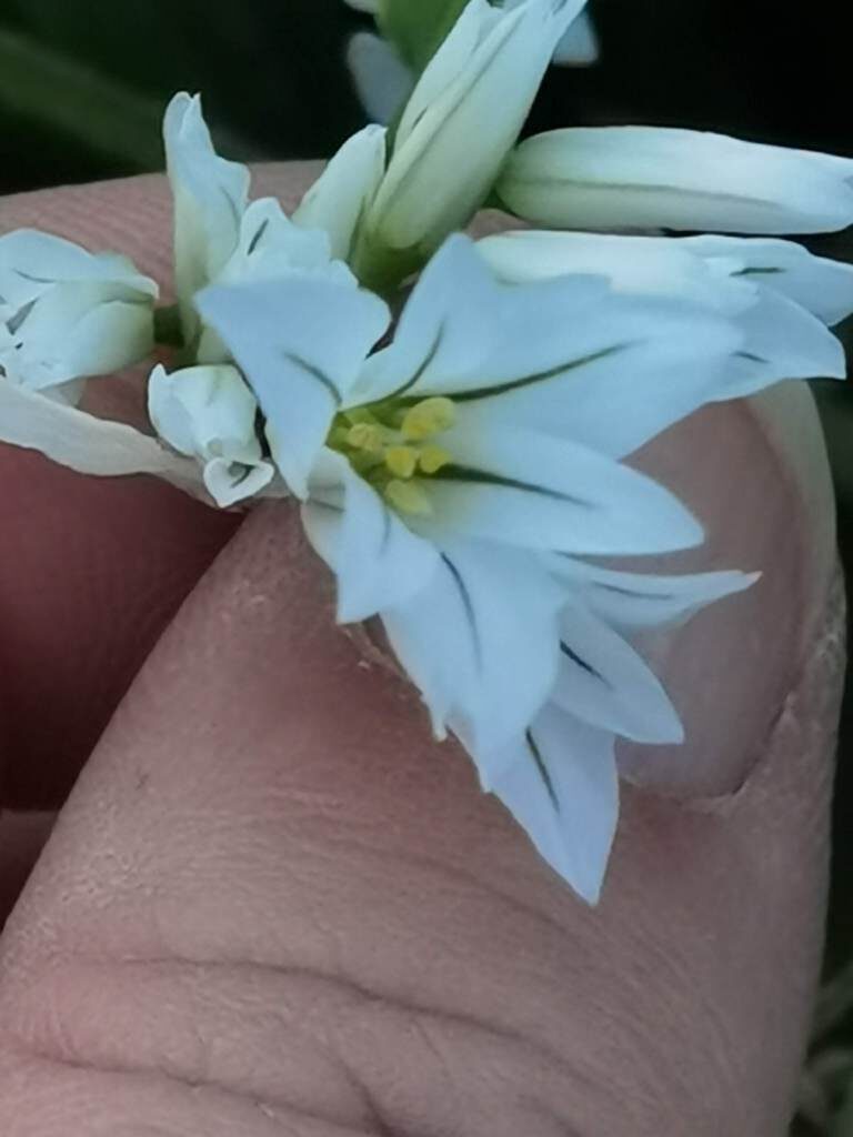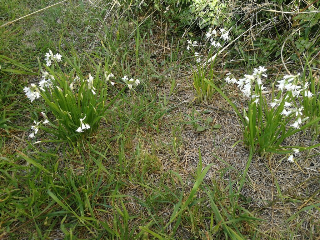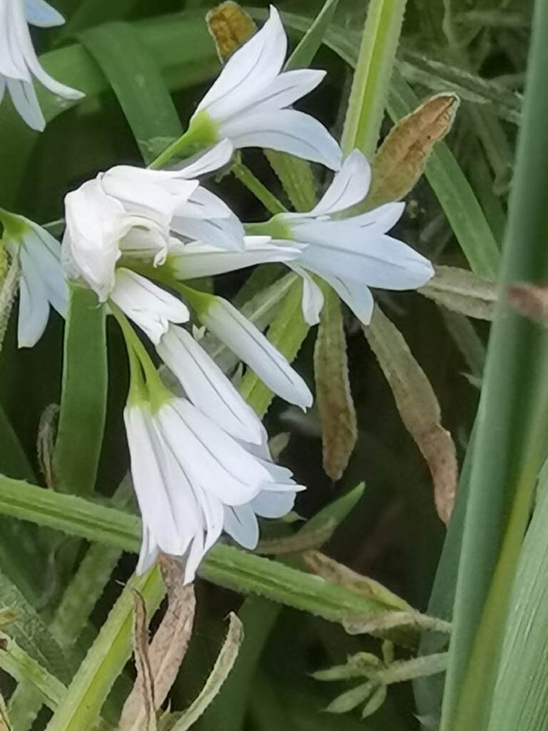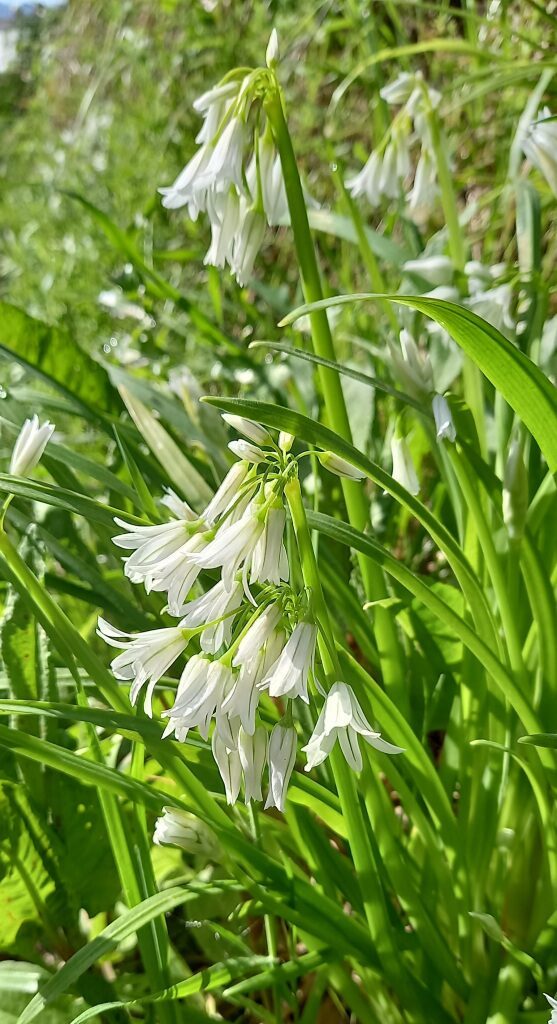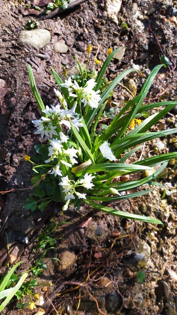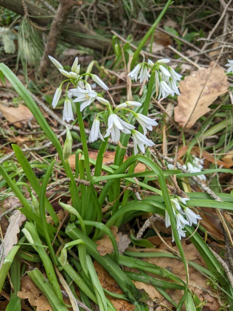 És una herba bulbosa amb una forta olor d’all. El bulb és ovoide, de 13-28 mm i 2-3 bulbils a la base. Les tiges tenen secció triangular amb tres cantells molt aguts. Les fulles són planes, de fins a 40 cm de llargada, pràcticament basals, disposades totes al terç inferior de la tija i més o menys suculentes. La inflorescència és en forma d’umbel·la i les flors al capdamunt d’una tija laxa amb 3-15 flors pedicel·lades i finalment pèndules. Tenen 6 tèpals blancs, lanceolats i aguts, 6 estams més curts que els tèpals i soldats a la base d’aquests, i l’estigma trífid. La càpsula porta 1-2 granes per compartiment. Floreix a finals de l’hivern i a la primavera.