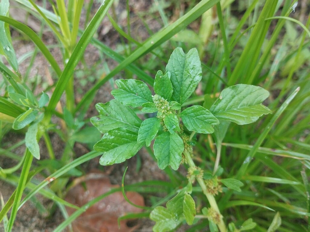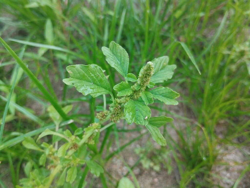 És una herba anual de 10-40 cm, decumbent i ramificada. Les fulles són peciolades amb el limbe ovato-romboidal profundament emarginat. Les flors agrupades en glomèruls axil·lars, les superiors en inflorescència terminal curta, espiciforme i afil·la. Les bràctees ovades arriben a 1/3–1/2 de la longitud dels tèpals. Els tèpals de la flor femenina són obtusos. El fruit d’1,5-2,5 mm té les granes negres, lluents i lenticulars.