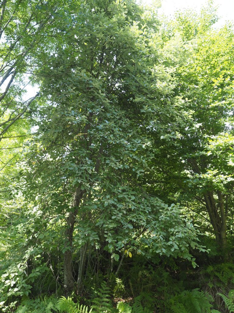 És un arbre caducifoli de 6-15 m, de capçada ampla, ramificada i amb l’escorça grisenca. Les fulles són simples, de 5-12 cm, amb 8-14 parells de nervis laterals, peciolades, ovades o el·líptiques, serrades irregularment, glabrescents i verdes a l’anvers i tomentoses i blanquinoses al revers. La inflorescències és en corimbe ample amb flors de 10-15 mm de diàmetre i que tenen els sèpals tomentosos per la cara externa i els pètals blancs i patents. El fruit és en pom de 6-15 mm, carnós, globulós, primer de color carbassa i al madurar esdevé vermell i brillant.