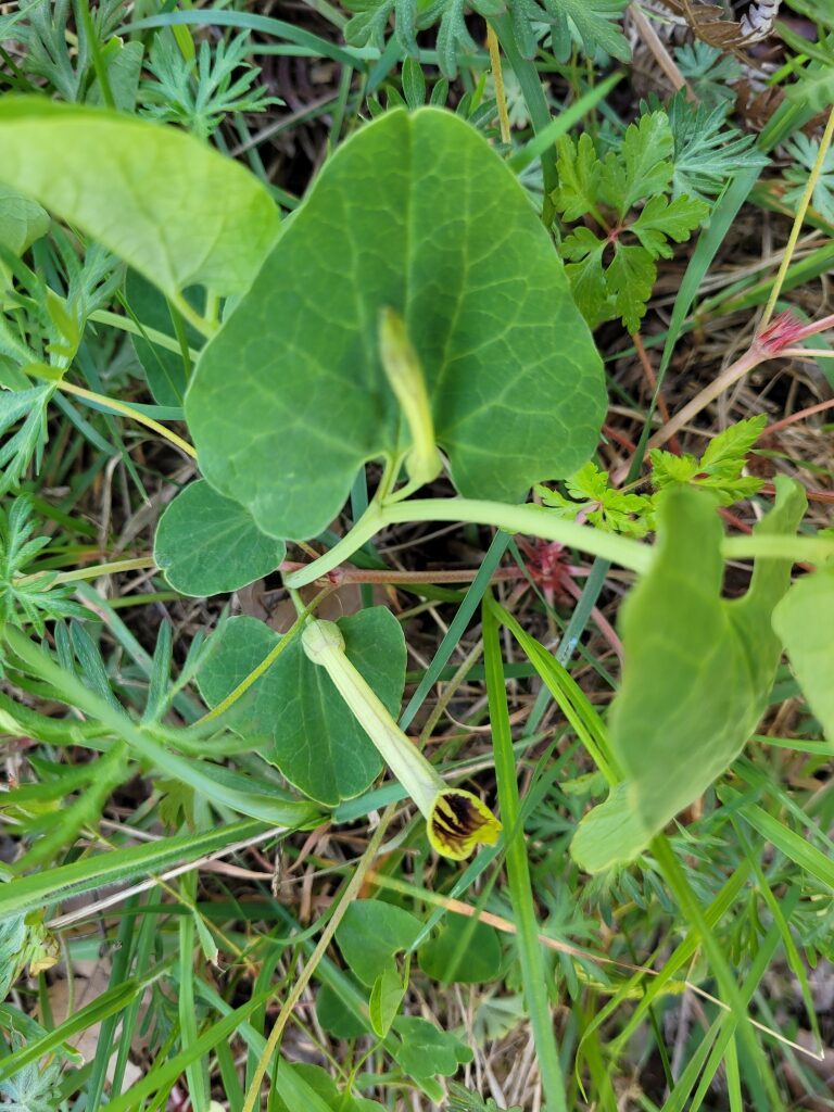 És una herba perenne de 20-60 cm, rizoma tuberós, cilíndric o fusiforme i amb les tiges ascendents i normalment ramificades. Les fulles són peciolades amb el limbe ovato-triangular, la base cordiforme de sinus basal obert i el contorn enter. Les flors, de 3-5 cm, són solitàries, brunes o verdoses i amb el limbe més curt que el tub. El fruit és en càpsula de 1-2,5 cm, el·lipsoidal o piriforme.