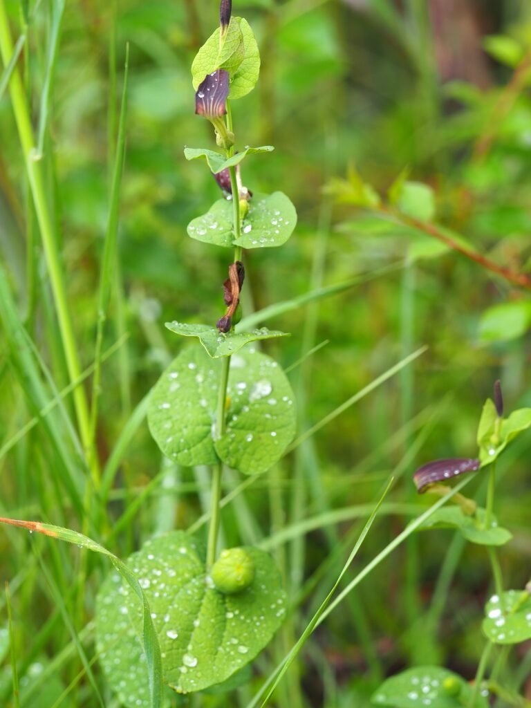 És una herba perenne de 20-60 cm amb un tubercle globulós o ovoide. Les tiges són febles, erectes o ascendents, simples o rarament ramificades. Les fulles són enteres, ovato-orbiculars, subsèssils, amplexicaules i cordades a la base. El sinus basal és molt tancat. Flors solitàries amb un peduncle de fins a 2 cm, groguenques, de 3-5 cm, glabres o glabrescents amb el tub recte i el limbe de la mateixa mida que el tub, que és marronós per l’exterior. El fruit és una càpsula subglobulosa d’1-2 cm.