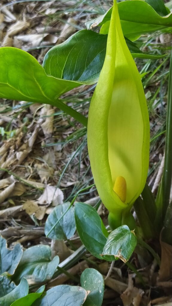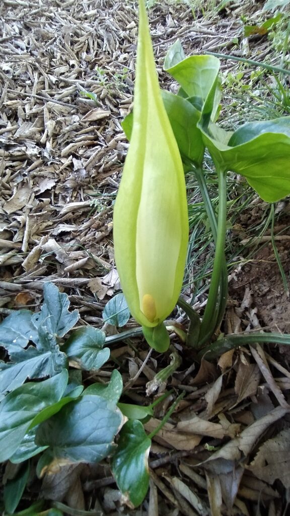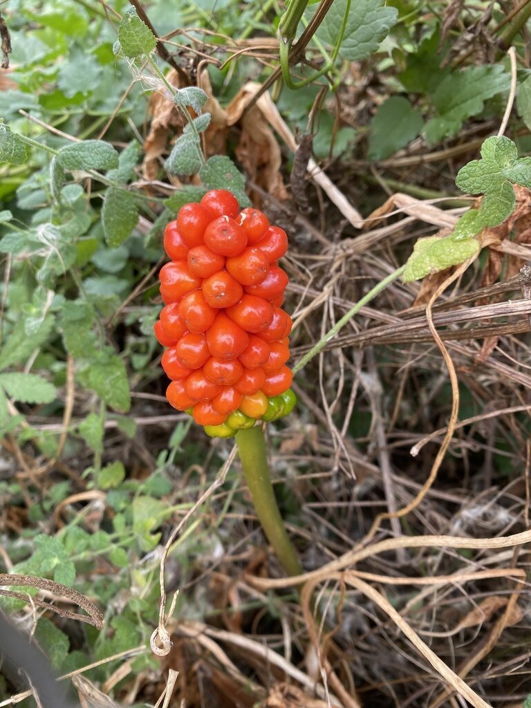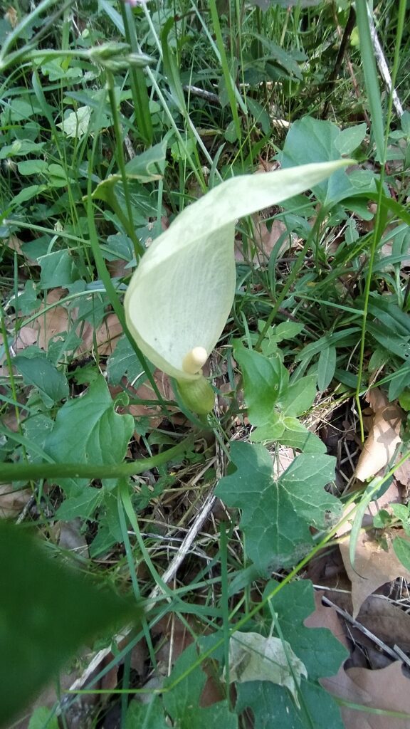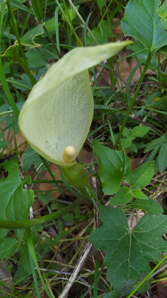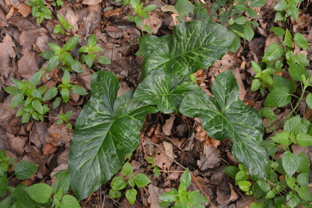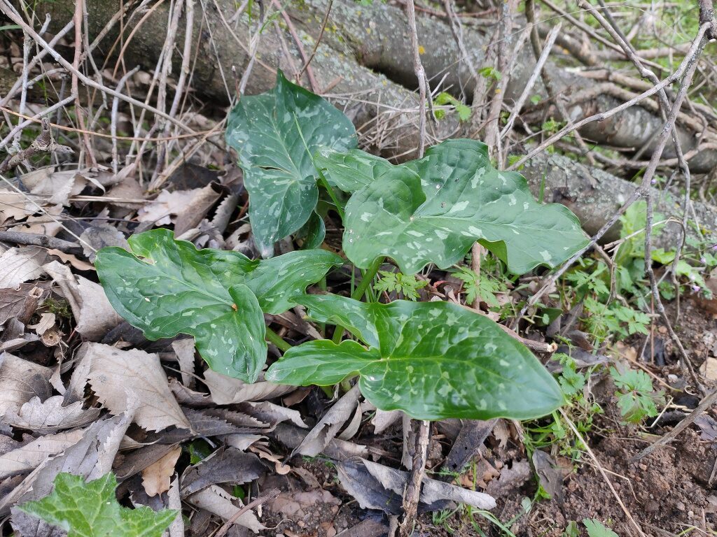 És una herba perenne de 20-60 cm, glabra, acaule i amb un tubercle de 2-8 cm. Les fulles, que apareixen al final de la tardor, són d’un verd clar, llargament peciolades i amb el limbe tacat amb venes blanquinoses, hastat, acuminat i rarament mucronat. La inflorescència (espàdix) és una espiga compacta groga, gruixuda i carnosa amb les flors masculines a la part superior i les femenines a la part inferior; està envoltada per una espata blanquinosa o verdosa més gran. L’espiga fructífera té 8-15 cm amb els fruits en baia vermellosos.