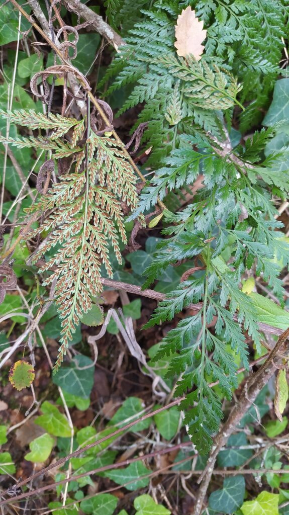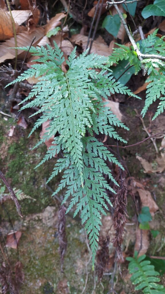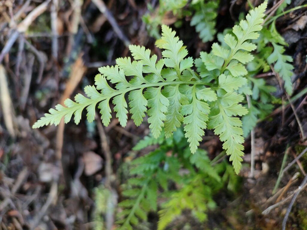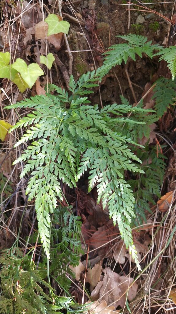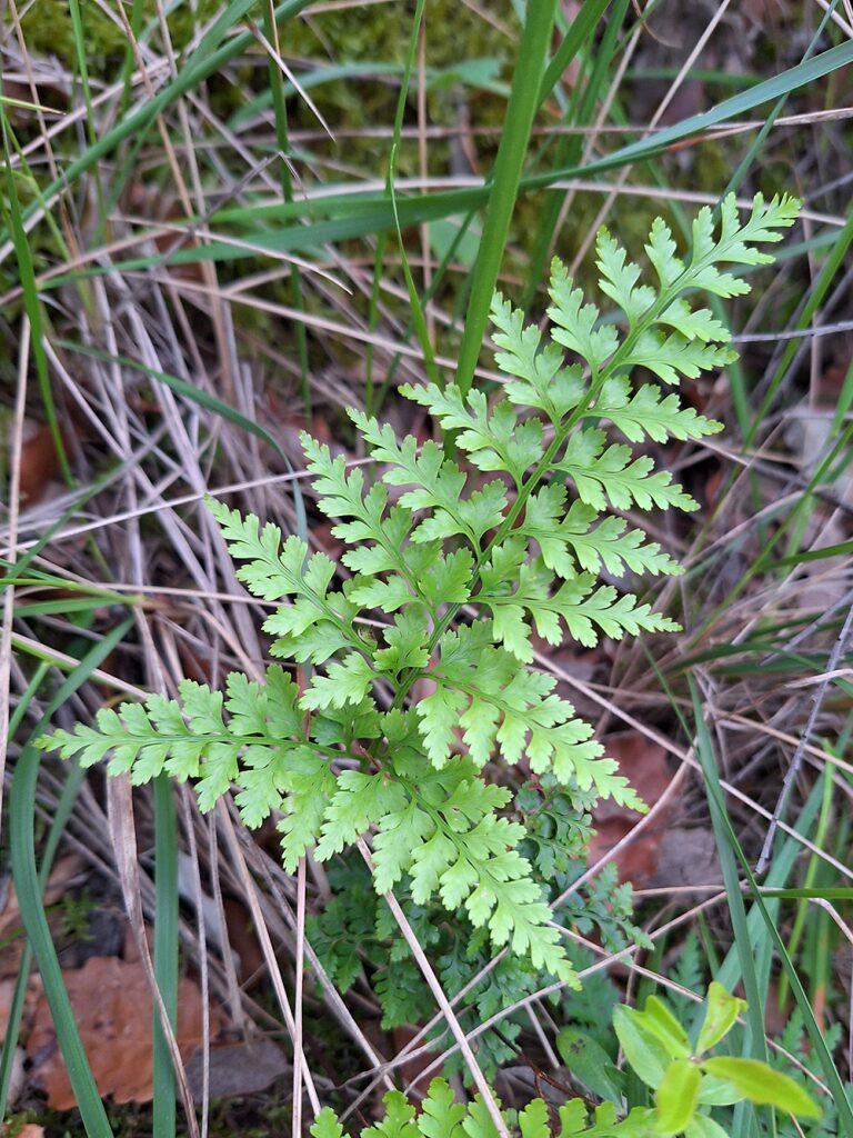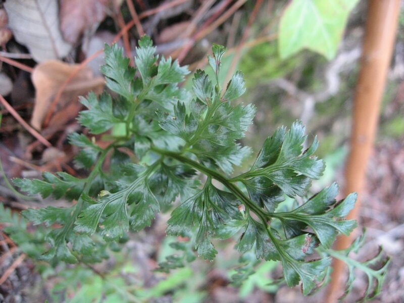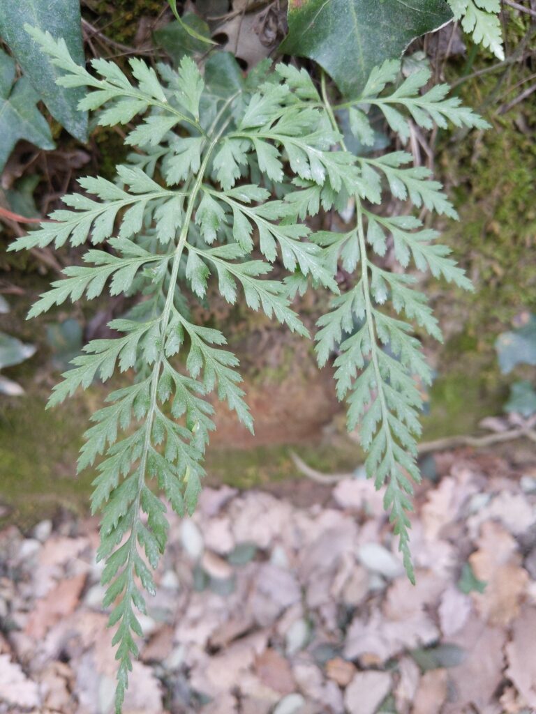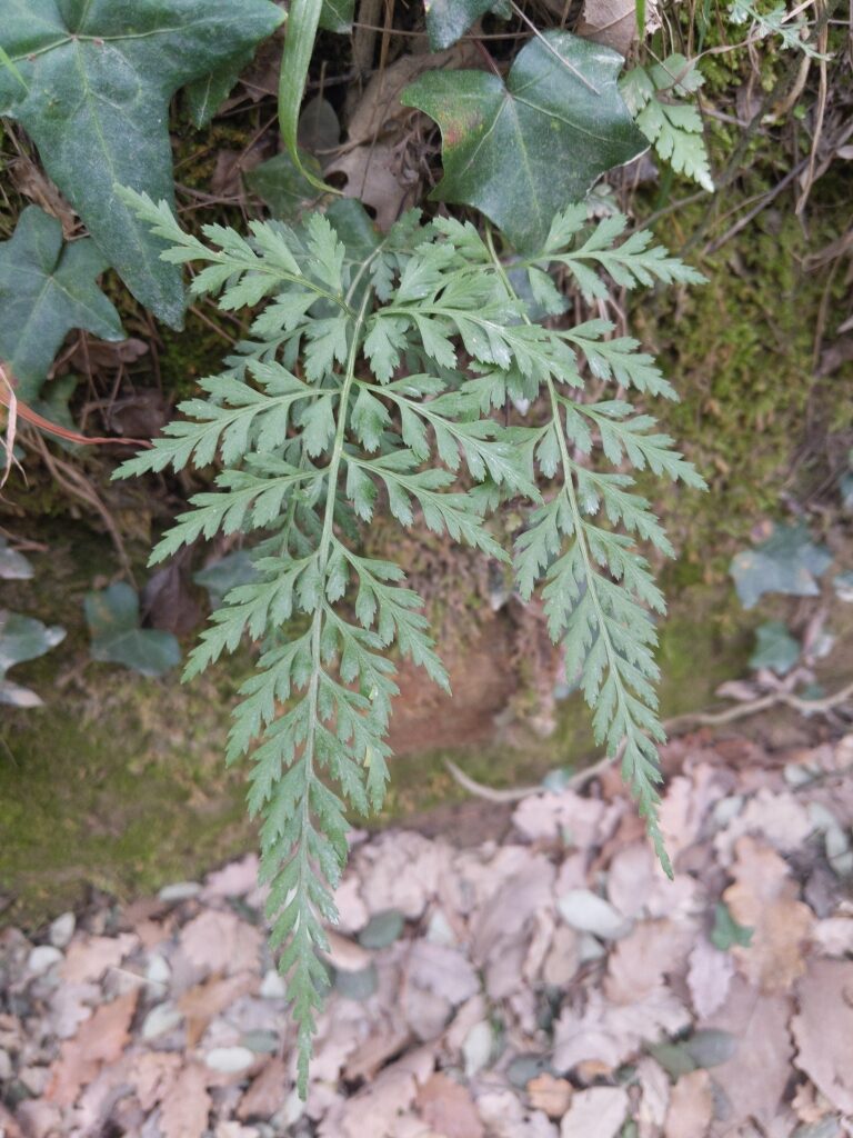 És una falguera de 15-45 cm, de rizoma ± allargat, pilós i amb esquames. Les fulles (frondes) de 10-30 cm, són ovato-triangulars amb el pecíol generalment de longitud molt superior a la del limbe i d’un bru-negrós fins més amunt de la meitat de la fronda. El limbe és d’un verd fosc lluent, pinnatisecte amb segments acuminats, els inferiors sovint tan llargs com la meitat de tota la làmina i arcuats. Les pínnules són de linears a ovades amb dens llargues i agudes. L’indusi és de marge enter i els sorus oblongo-linears.