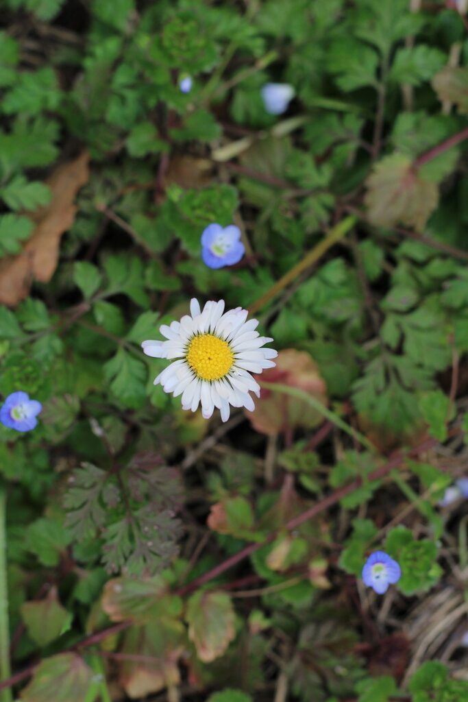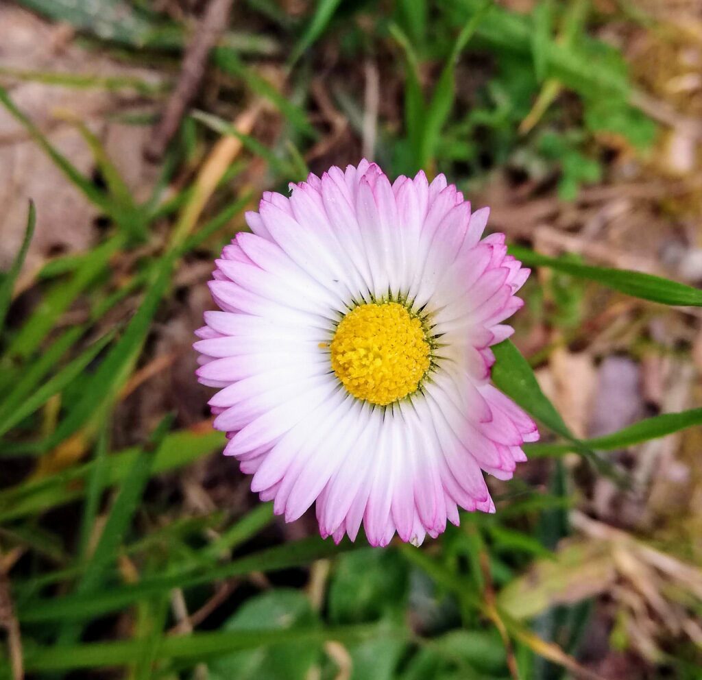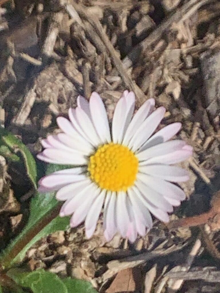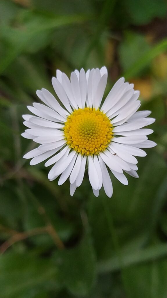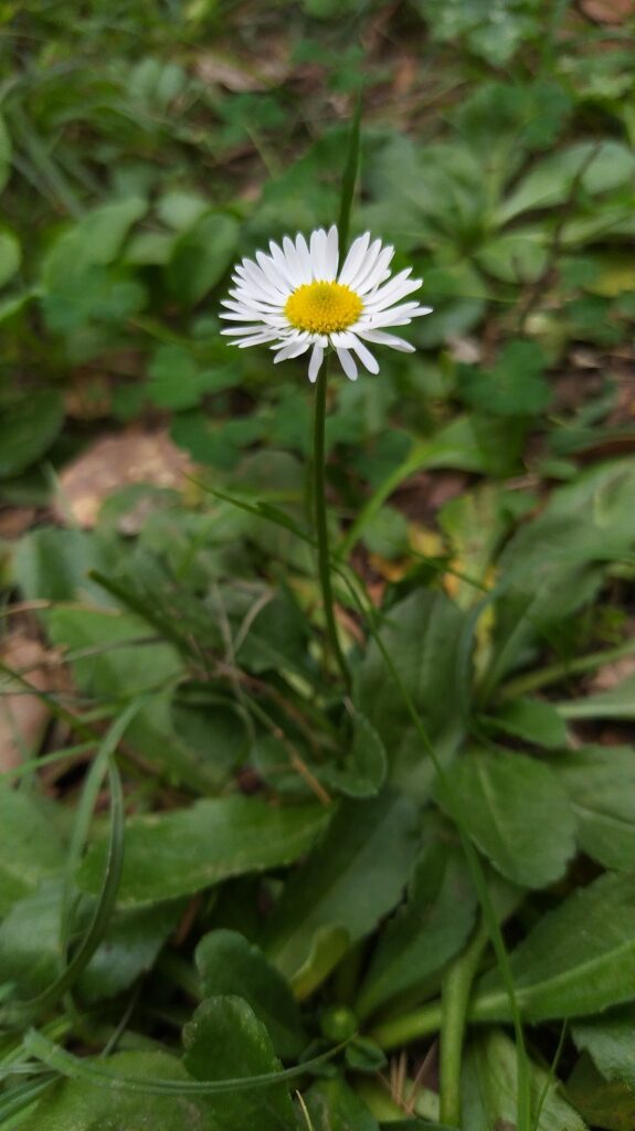 És una herba perenne de 5 a 25 cm, acaule, de rabassa gruixuda i carnosa amb les fulles ± aglomerades en roseta basal i estolons curts. Les fulles són pubescents o glabrescents amb el limbe obovat i bruscament contret en pecíol, de contorn ± crenat i àpex obtús normalment amb un sol nervi. El capítol de flors, d’1,5 a 3 cm de diàmetre, es troba al damunt del peduncle, que fa de 4 a 25 cm. Les bràctees de l’involucre són ordinàriament obtuses. Les flors externes tenen la lígula blanca, sovint tenyides de púrpura al revers o l’àpex; les centrals son tubulars i grogues, de vegades amb l’àpex vermellós a la maduració. Els fruits, en aqueni pilós, no tenen papus.