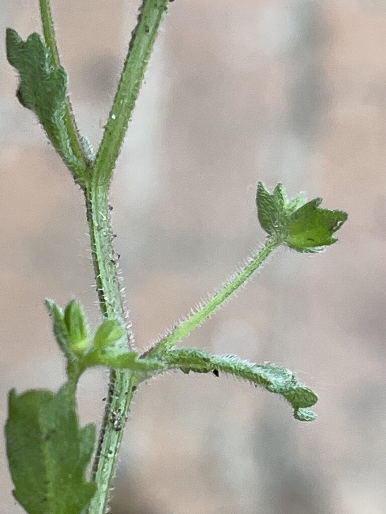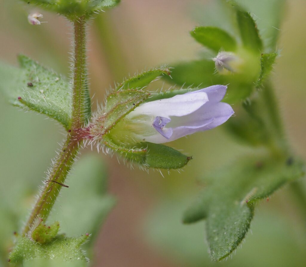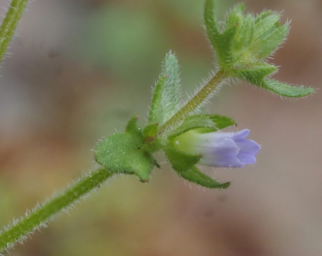 És una herba anual de 5-30 cm, d’arrel prima, simple o ramificada, laxa i híspida. Les fulles són ovades, obovades o oblongues i crenato-dentades, les inferiors curtament peciolades o sèssils i la resta totes sèssils. La inflorescència en panícula foliosa, és ± corimbiforme, de flors terminals i axil·lars subsèssils. El calze amb el tub més curt que les dents, que són triangulars i finalment patents. La corol·la és blau-cel o violàcia de 3-5 mm de longitud semblant o una mica superior a la del calze. Càpsula de 3-5 mm, urceolada i pèndula.