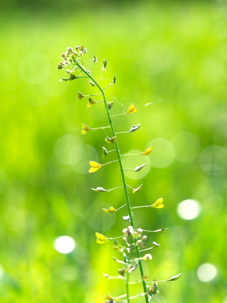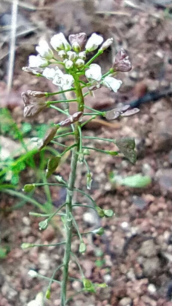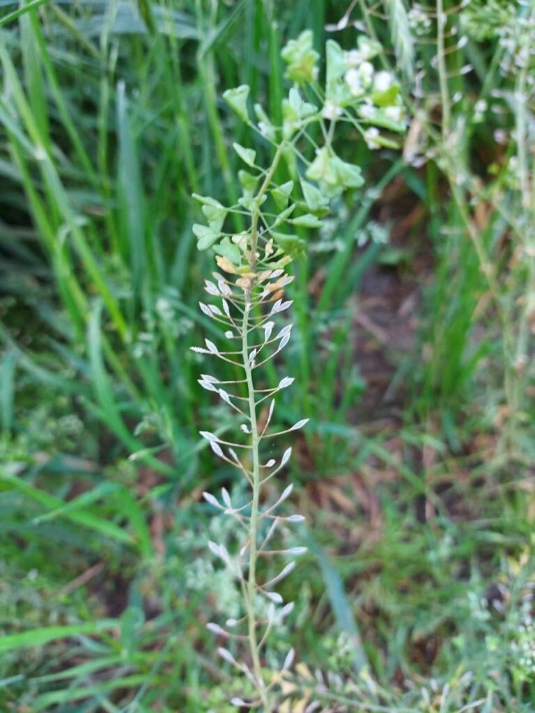 És una herba anual o biennal, de 2-40 cm ± ramificada i amb tiges erectes o ascendents, estriades i amb pèls simples i estelats. Les fulles basals són en roseta, oblongues, peciolades, pinnatífides o pinnatipartides, i rarament enteres o denticulades, les caulinars auriculades, amplexicaules, oblongues, enteres o ± dividides. La inflorescència és en raïm; les flors tenen els sèpals verds, ± erectes, d’1-2 mm, ovats i amb el marge escariós, els pètals blancs, obovats, de 2-3 mm i amb l’ungla curta i 6 estams. El fruit és en silícula triangular, amb els marges laterals convexos o rectes i l’estil molt curt; porta fins a 15 granes per cada lòcul.