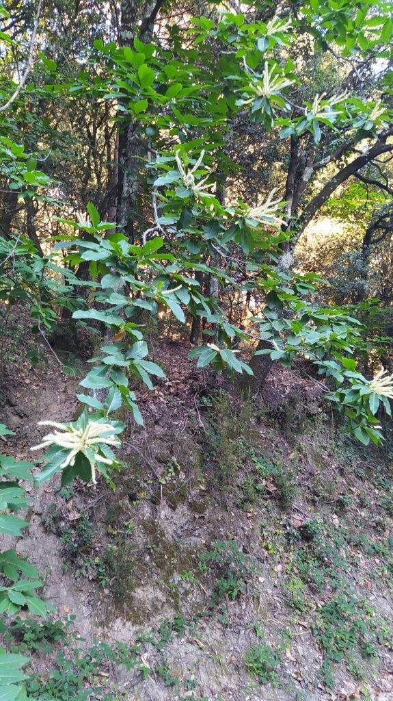 - Usos: els aprofitaments del castanyer (la castanya, les perxes i els troncs gruixuts) han estat importants des de molt antic i fins fa poques dècades. Actualment han minvat molt a causa de les diverses plagues que afecten al castanyer i dels canvis socioeconòmics que han comportat una menor demana dels productes forestals. –