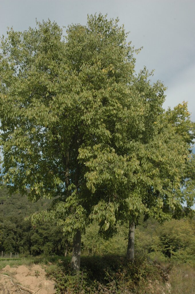 - Usos: s’ha plantat per l’aprofitament de les branques i els troncs per a la fabricació de forques, rampins, bastons i mànecs d’eines. La fusta és flexible i compacte, molt apte per a cèrcols, cadires, jous, collars dels esquellots i peces de carro. Les fulles i els fruits han estat emprats per a usos remeiers, ja que verds són astringents; s’havien fet servir per tractar la disenteria. El fruit, el lledó, madur és comestible, tanmateix és dolç i agradable per a alguns i insípid per a altres. . –