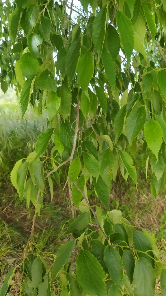 És un arbre caducifoli de 5-25 m amb l’escorça llisa i grisenca, la capçada ovoide i les branques primes i erectes. Les fulles són aspres al tacte, simples, peciolades, alternes, asimètriques, amb el contorn dentat i l’àpex fortament acuminat. Les flors són masculines o hermafrodites, axil·lars, solitàries o rarament en grups de 2-3. El periant té 5 tèpals. Totes les flors tenen 5 estams, però les hermafrodites, a més, tenen un ovari de dos carpels soldats i un sol lòcul. El fruit és una drupa llargament pedunculada, globulosa, de 8-12 mm de diàmetre i de color violaci fosc. Aquest fruit, el lledó, és dolç i comestible.