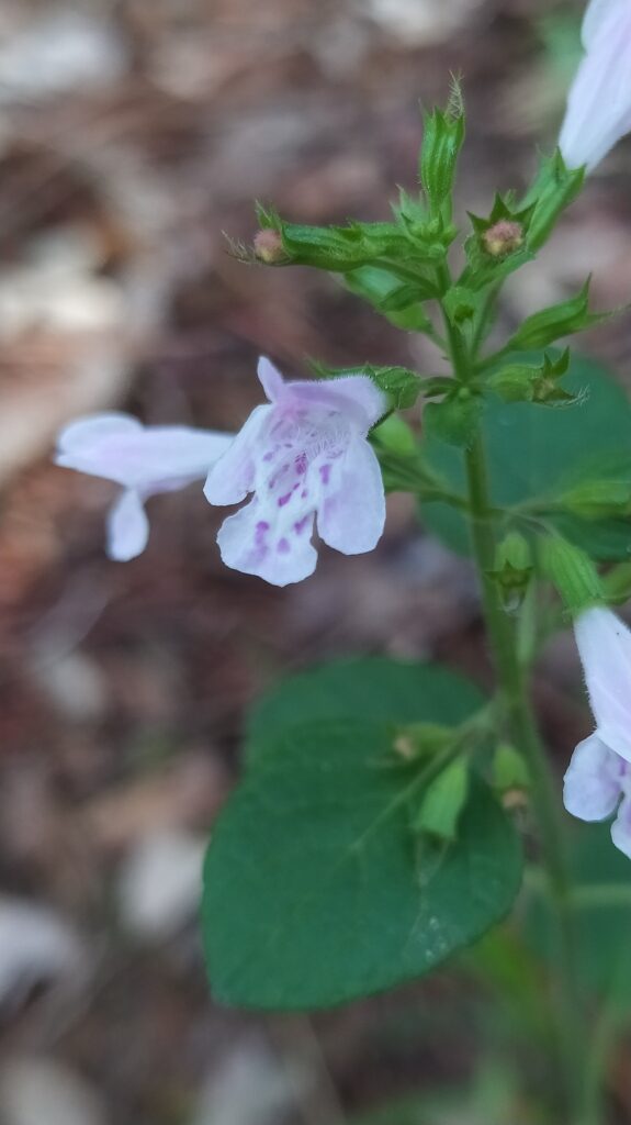 És una herba perenne de 20-60 cm, herbàcia o ± llenyosa a la base, ± pubescent, olorosa i amb les tiges normalment ramificades. Les fulles són oposades, peciolades, amplament ovades i de contorn subenter o lleugerament dentat. La inflorescència està disposada en cimes pedunculades laxes i axil·lars. Les bràctees inferiors són semblants a les fulles, les superiors més petites i enteres. El calze, de 3-7 mm, és bilabiat amb el llavi superior format per 3 dents triangular-lanceolades i l’inferior per dues dents lanceolato-linears. La corol·la, d’un blau-violaci pàl·lid, fa de 10-16 mm i ultrapassa la gorja del calze en 0,8-1 mm.