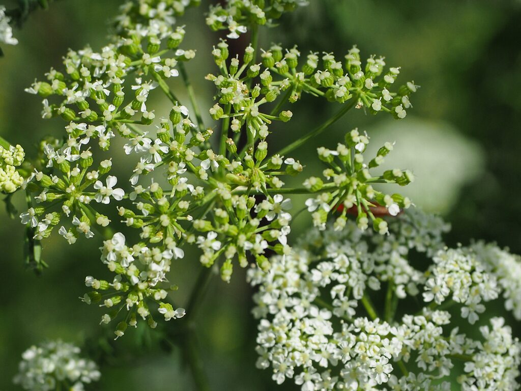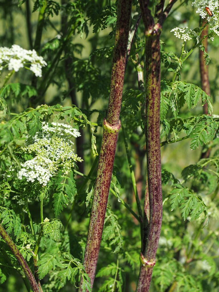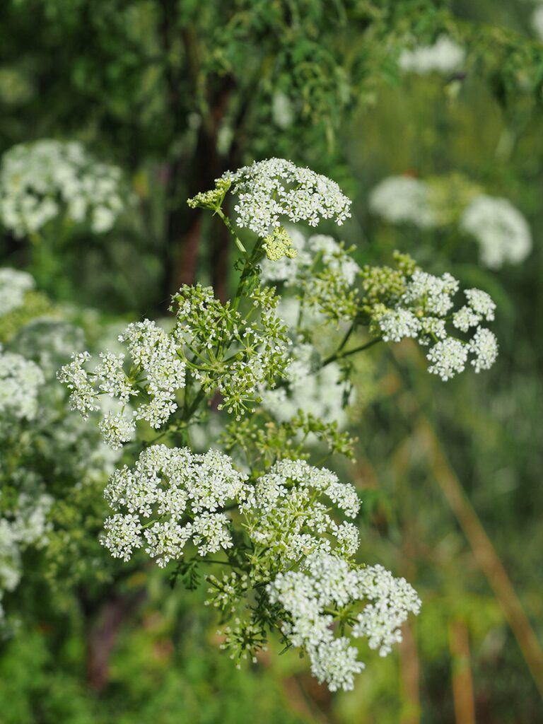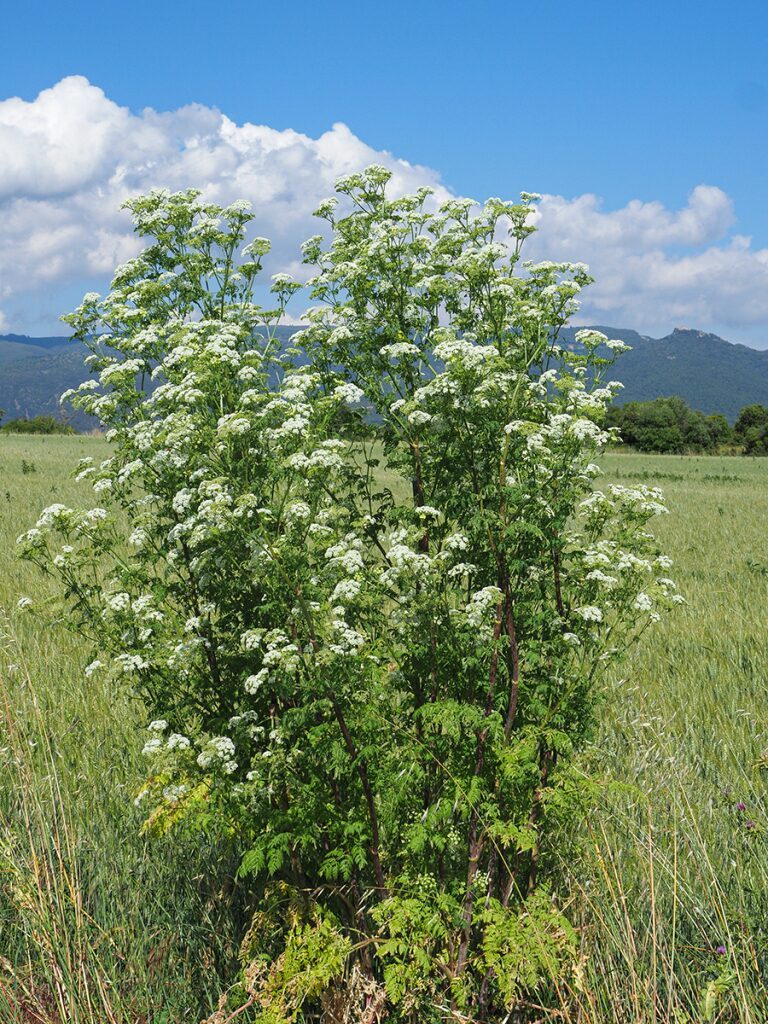 És una herba anual o biennal de 30-250 cm, erecta, ramificada, glabrescent i fètida amb la tija fistulosa, estriada i sovint amb taques purpúries a la part inferior. Les fulles són blanes, les inferiors peciolades, grans, de contorn triangular, pinnatisectes, dividides en segments ovato-oblongs i inciso-dentats i les superiors més petites i subsèssils. Les inflorescències són umbel·lars de 10-20 radis pubèruls, amb l’involucre de 5-6 bràctees estretament triangulars, reflexes i amb el marge escariós i l’involucel amb 3-6 bractèoles, sovint soldades entre elles per la base i desviades cap el costat extern. Els pètals són blancs, emarginats. El fruit és de 2,5-3,5 mm amb les costes generalment ondulades i crenades.