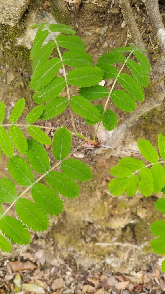 És un arbre caducifoli de 5-12 m, de capçada amplament piramidal, amb les branques patents i l’escorça rugosa, finament clivellada i de color marró i rogenc. Les fulles són compostes, imparipinnades amb 5-8 parells de folíols oblongs, serrats, de joves pubescents, després glabres o glabrescents. La inflorescència és en corimbe amb moltes flors, que tenen els pètals blancs i els sèpals recorbats cap enfora després de la florida. Els fruit és en pom de 2-3 cm i de color verd grisenc o verd-rogenc. És comestible i té un sabor agradable.