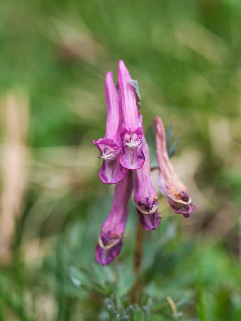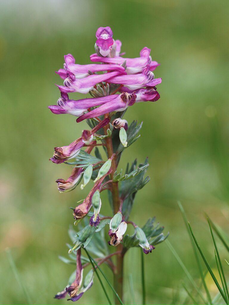 És una planta perenne de 10-20 cm, tuberosa, erecta i glabra. El tubercle és esfèric i massís. La tija és simple amb 1-2 fulles enteres i oblongues ± esquamiformes a la part inferior i 2-4 fulles a la tija biternatocompostes amb els segments cuneïformes i lobulats. La inflorescència és en raïm de 10-20 flors amb les bràctees ordinàriament digitades i les flors rosades de 15-22 mm, zigomorfes i amb un llarg esperó. El fruit és oblong de 10-25 mm i finalment pèndul.
