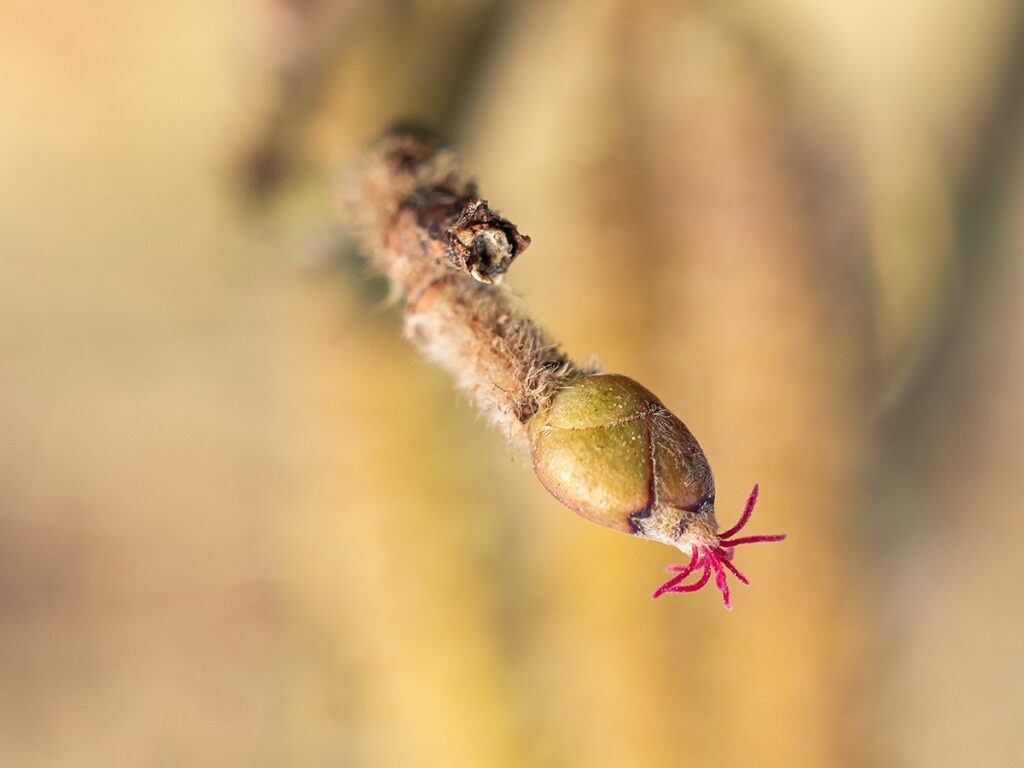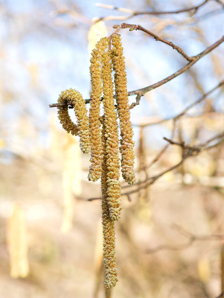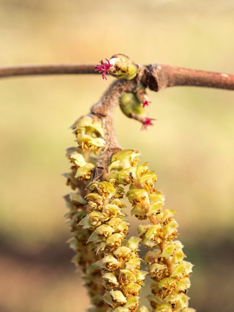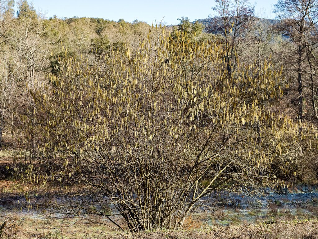 És un arbust alt o arbret molt ramificat des de la base, sense un tronc principal definit. Els troncs tendres són coberts de pèls. Les fulles són simples, alternes, una mica piloses, rugoses i aspres al tacte. El pecíol és curt i el limbe orbicular, ample, amb la base cordada i la punta sobtadament estreta; té el marge irregular i doblement dentat i la nervadura ben marcada amb un nervi principal i nombrosos de secundaris gairebé paral·lels. És monoic i floreix a ple hivern, abans que surtin les fulles; les flors masculines s’agrupen en aments llargs i penjants i les femenines són poc visibles i formen glomèruls, semblants a una gemma, d’on sobresurten els estigmes vermells, dos per cada pistil. El fruits és l’avellana, comestible.
