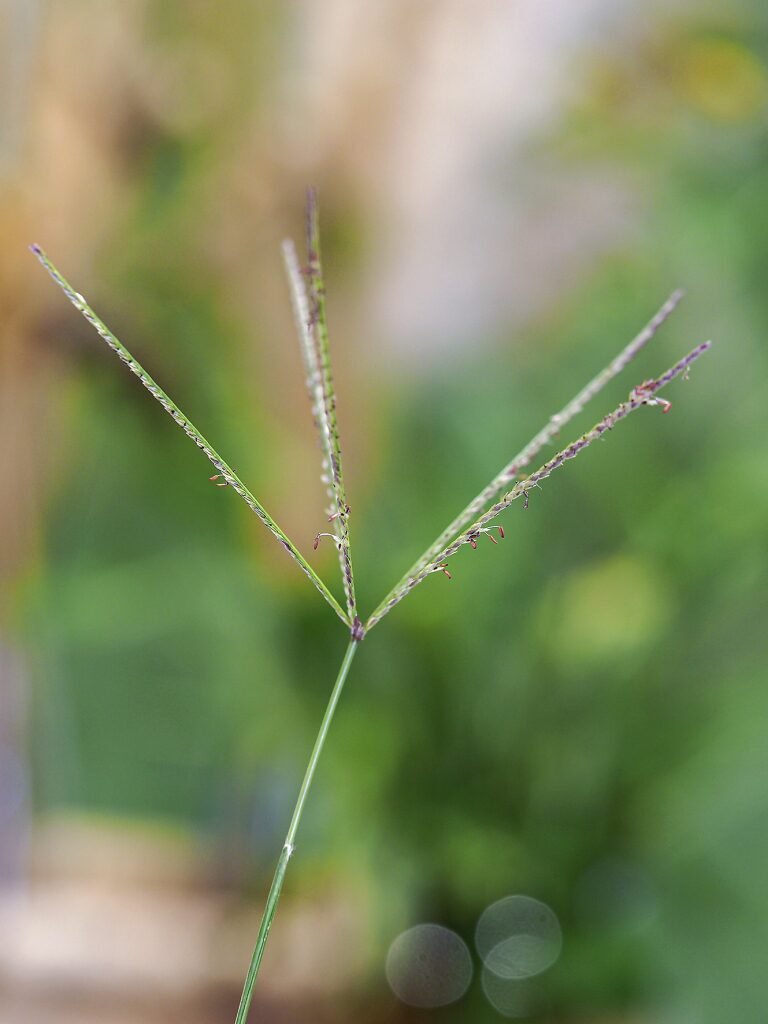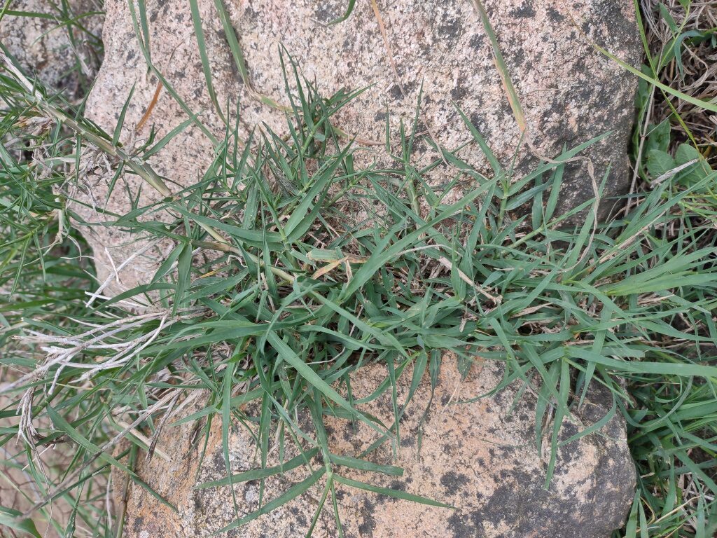 És una herba perenne de 10-30 cm, llargament estolonífera. Les tiges fèrtils són erectes o ascendents i glabres. Les fulles caulinars es troben disposades de forma dística. Les beines són glabres o piloses; el limbe és de 5-16 x 0,2-04 cm i la lígula formada de pèls. La inflorescència és digitada normalment amb 3-6 espigues. Les espiguetes fan de 2-3 mm amb una sola flor fèrtil, les glumes són lanceolades desiguals i un lemma subobtús de 2,5-3 mm.