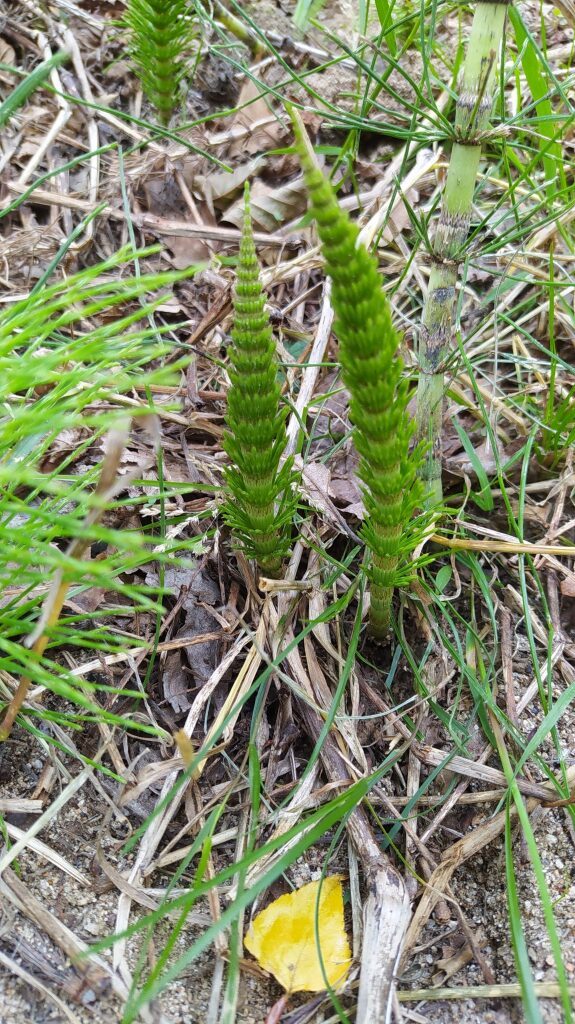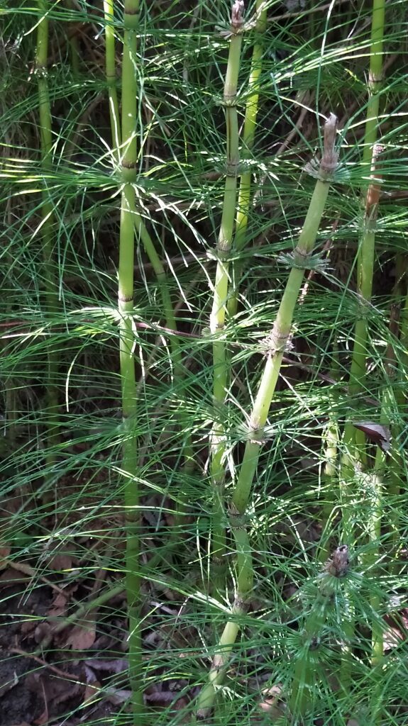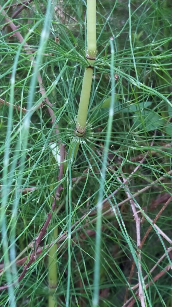 És una planta perenne de 20-100 cm amb tiges dimorfes. Les tiges estèrils són blanquinoses o d’un verd pàl·lid, fistuloses i amb el conducte central molt ample; les beines són aplicades amb 20 dents o més; les nombroses ramificacions són verdes, agrupades en verticil·lastres, simples, planes i amb beines curtes acabades fent 4 dents. Les tiges fèrtils es desenvolupen abans que les estèrils i són més curtes, fan 6-15 mm de diàmetre, són de color blanc d’ivori amb les beines campanulades d’1,5-4 cm de longitud i 15-35 dents. Les espigues esporangíferes són brunes o rogenques de 3-5 cm o més.