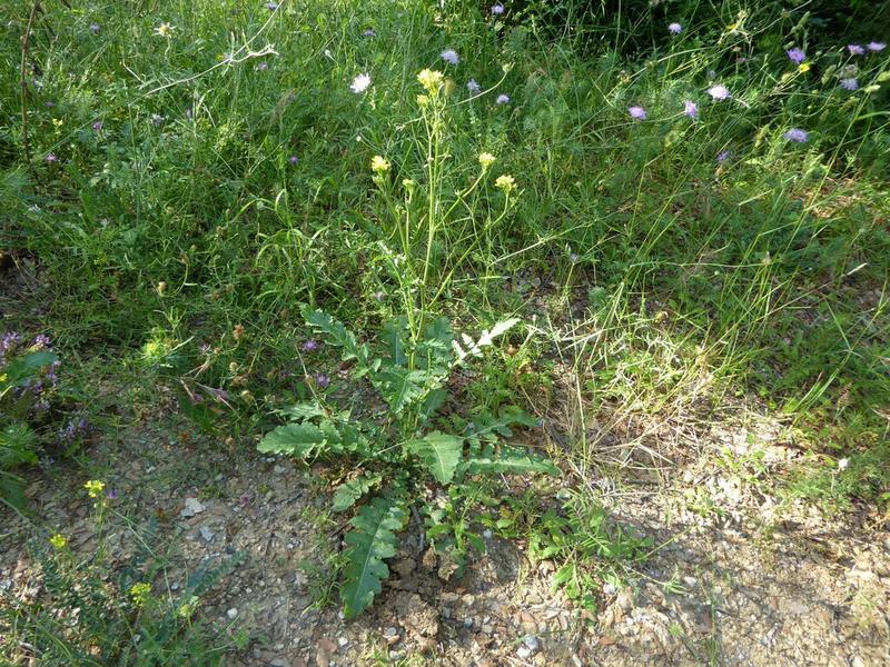 És una herba biennal o perenne de 20-80 cm amb la tija erecta, ramificada, pubescent i setulosa, de secció quadrada amb els angles arrodonits. Les fulles són setuloses, sobretot als nervis, pinnatisectes o pinnatipartides; les superiors tenen els segments basals amplexicaules. La inflorescència és en raïm de 10-70 flors amb pedicels prims d’uns 10 mm erecto-patents, els sèpals ± patents i els pètals de 6-10 mm d’un groc viu. Els fruits són síliqües toruloses ascendents, estipitades, amb l’àpex de les valves arrodonit i truncat i el bec normalment amb una grana.