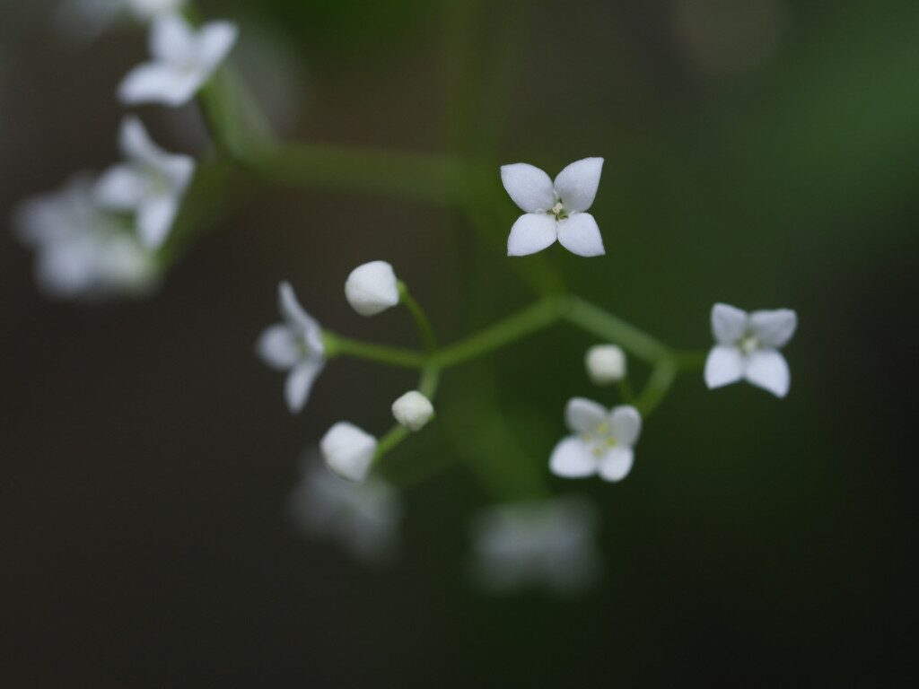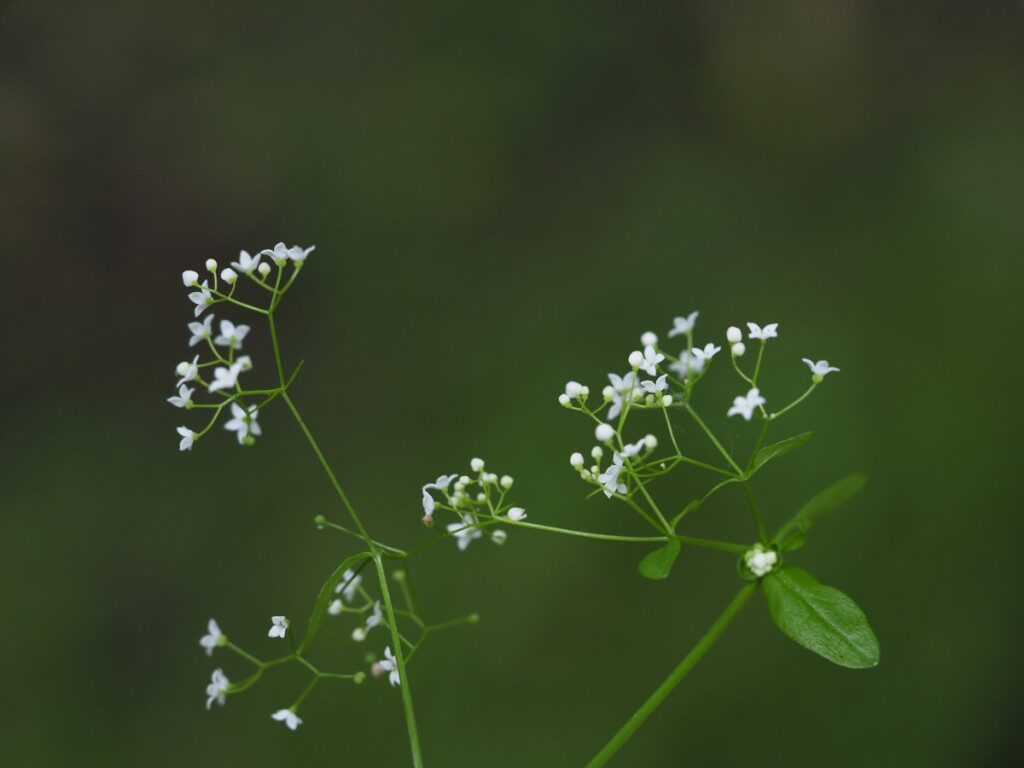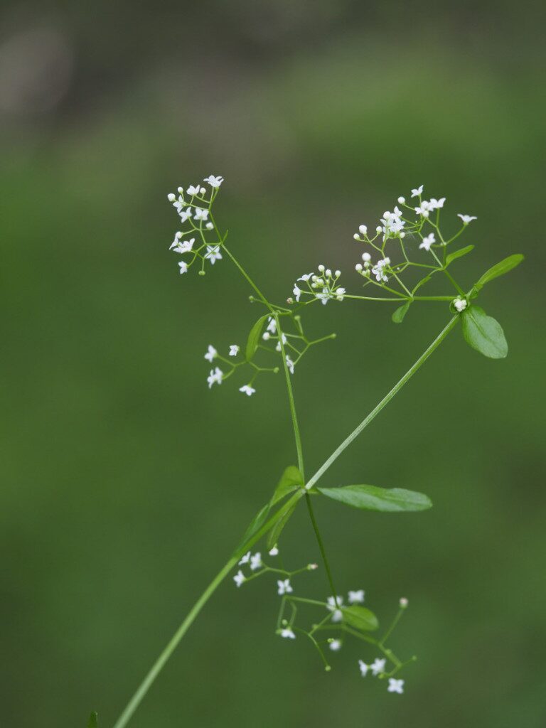 És una herba perenne de 15-100 cm, decumbent i glabrescent. La tija té costes poc acusades. Les fulles, disposades en verticils de 4-5, són obtuses o rarament subagudes. La inflorescència és paniculiforme cilíndrica o piramidal amb les branques normalment erecto-patents. Les flors són tetràmeres amb la corol·la blanca i tenen 4 estams. Els pedicels són erectes després de la florida. Els fruits de 2-3,5 mm són ovoides o subglobosos, llisos o tuberculats.