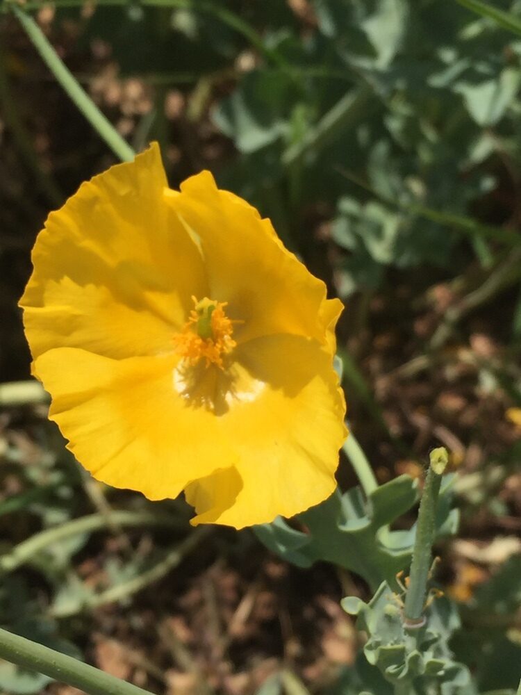 És una herba biennal de 30-90 cm, erecta o decumbent, ramificada i glauca. Té la tija glabrescent o ± pilosa a la part inferior. Les fulles, que són gruixudes, fan de 15-30 cm de longitud; les inferiors, peciolades, són més grans que les caulinars, que són amplexicaules, oblongues i pinnatipartides amb els lòbuls dentats irregularment. Les flors, grogues i solitàries, fan de 5-9 cm de diàmetre amb els peduncles glabrescents. Els sèpals són ovats o oblongs i ± pilosos. Tenen 4 pètals obovats i les anteres grogues. El fruit és una càpsula cilíndrica de 15-30 cm, sovint corbada.
