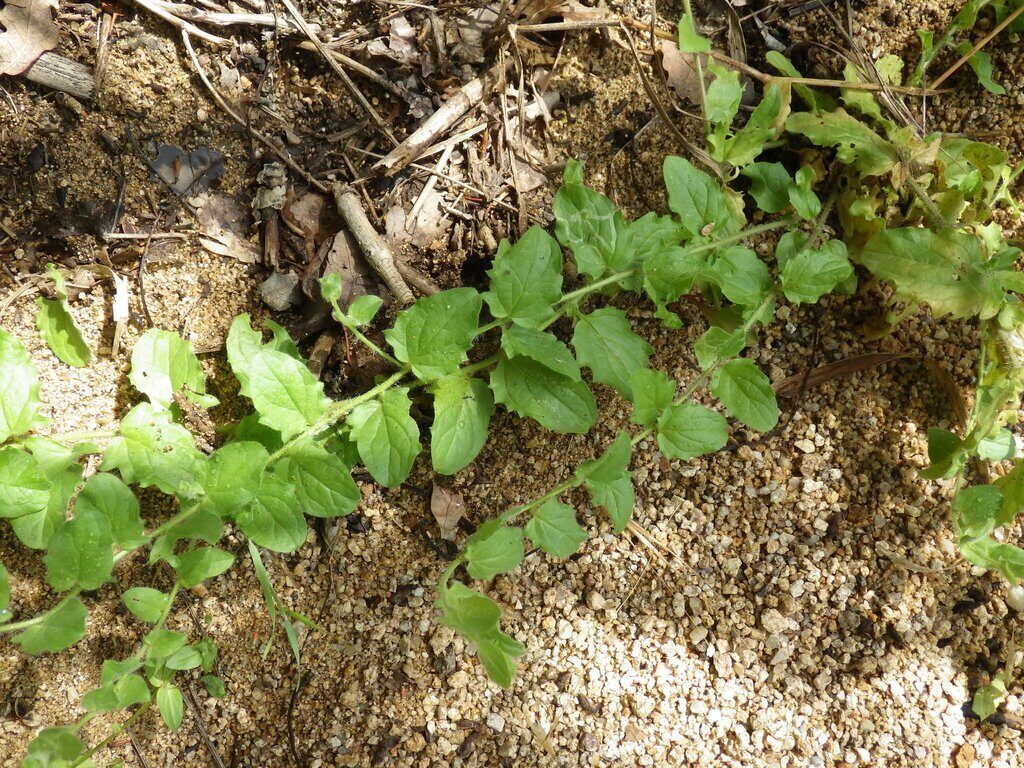 És una herba anual de 20-50 cm, pubescent-glandulosa. Les tiges són prostrades o ascendents i ramificades. Les fulles, normalment són alternes i peciolades amb el limbe ovat, sagitat o hastat. Les flors són zigomorfes, solitàries i amb els peduncles pilosos. Tenen el calze de 3-5 mm, dividit en segments lanceolats i soldats només a la base. La corol·la, de 7-15 mm, és d’un color groc pàl·lid amb el llavi superior violaci i l’esperó recte o corbat, ± cònic. La càpsula, de 4-5 mm, és ovoide o globosa i conté nombroses granes alveolades molt petites.