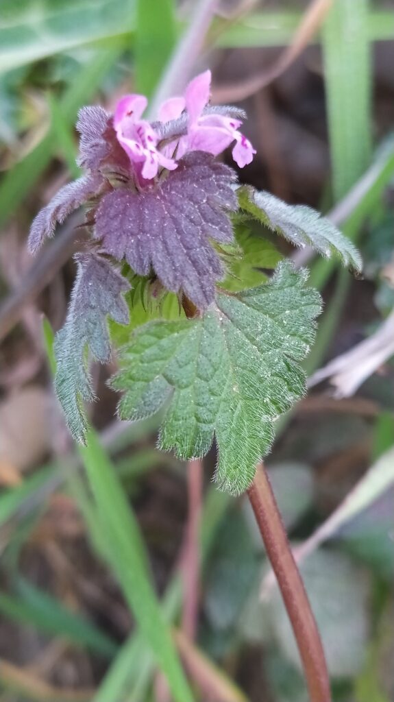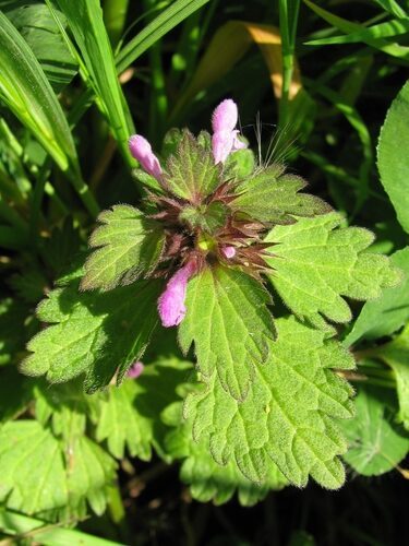 És una herba anual, de 5 a 30 cm, amb tiges erectes o decumbents i normalment amb pèls curts i rígids. Les fulles inferiors són llargament peciolades i les superiors amb el pecíol més curt, i el limbe és més o menys tan ample com llarg, cordiforme o obovat, amb l’àpex agut i el contorn dentat. La inflorescència és formada per 2-5 verticil·lastres molt propers entre ells, menys l’inferior que es troba una mica separat. Les bràctees són ovato-triangulars, profundament inciso-dentades, i amb el limbe atenuat a la base i més o menys decurrent sobre el pecíol. Cada verticil·lastre conté 2-10 flors, que tenen el calze de 5-6 mm amb el tub pilós i les dents iguals o més llargues que el tub, estretament triangulars i ciliades. La corol·la és purpúria i fa de 9-15 mm. És semblant a Lamium purpureum, però aquest té les bràctees dentades menys profundament i sovint és de color de púrpura.