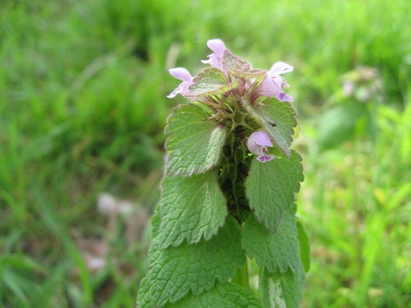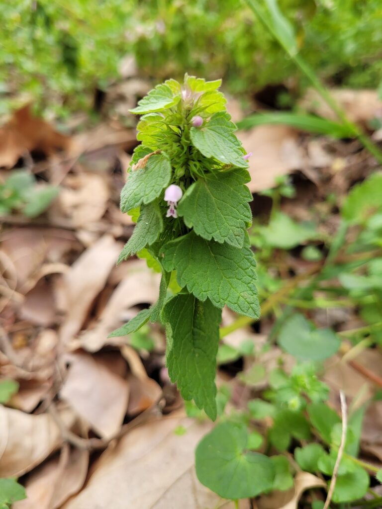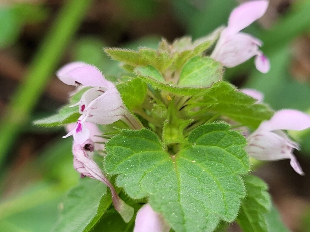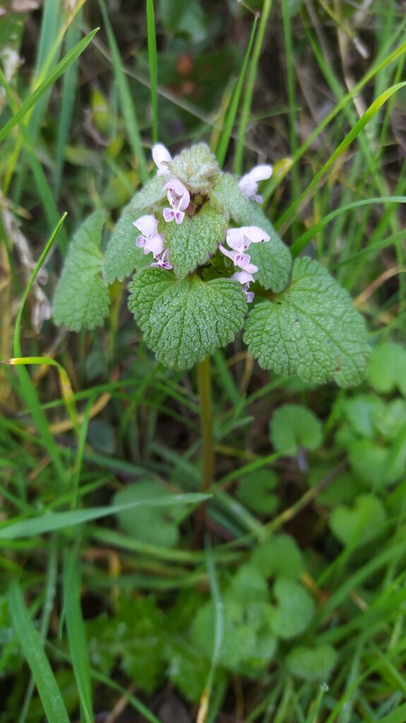 És una herba anual de 10-40 cm, erecta o ascendent, normalment ramificada des de la base. Les fulles són amplament cordiformes i de contorn dentat; les inferiors tenen el pecíol d’1-2 cm; les bracteals estan agrupades fent piràmide i les superiors, sovint tenyides de color de púrpura. La inflorescència és densa, amb un calze de 5-9 mm amb les dents ciliades de longitud semblant o més curtes que el tub. La corol·la és purpúria, de 10-18 mm, amb el tub dret de 7-12 mm i el llavi superior convex de 4-6 mm.