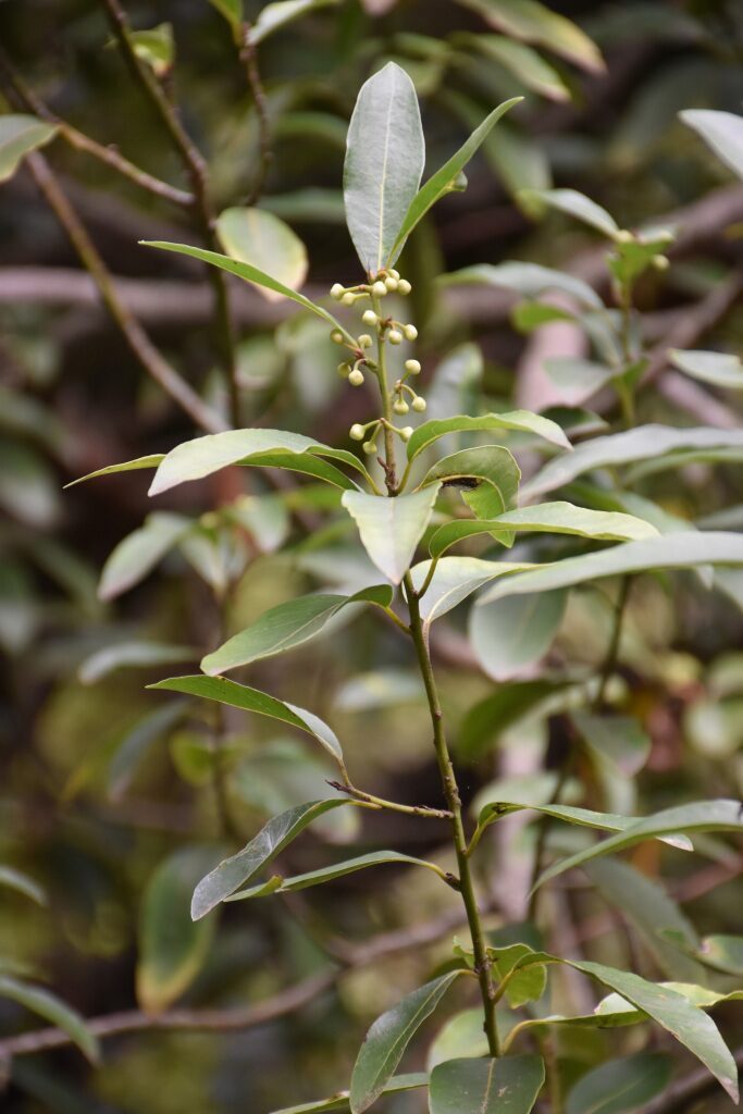 És un arbre dioic, perennifoli i aromàtic que fa de 5-15 m. L’escorça és grisa i llisa. Les fulles són esparses, coriàcies, lluents, lanceolades amb el contorn enter o lleugerament ondulat i atenuades en un pecíol curt. Les flors es troben agrupades en inflorescències umbel·lars a l’axil·la de les fulles. El periant està format per tèpals lliures blanquinosos, oblongs i caducs. Les flors masculines tenen de 8 a 14 estams i les femenines, 4 estaminodis al voltant del pistil amb l’estil curt, gruixut i l’estigma trígon. El fruit és una baia negra esferoidal lleugerament acuminada d’1-1,5 cm.