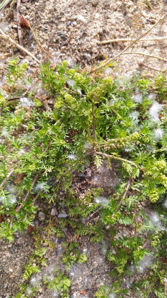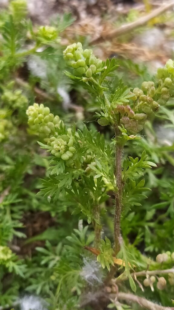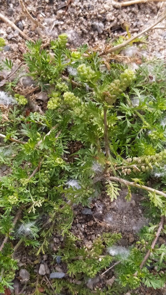- Ecologia: es fa en indrets nitrificats, vores de camins, terres calcigades més o menys humides, voreres i carrers empedrats. És originària d’Amèrica del Sud. . –