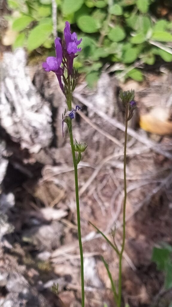 És una planta anual de 15-50 cm, estolonífera, erecta, poc ramificada. Les fulles inferiors i les fulles dels rebrots estèrils son lanceolades, oposades o verticil·lades, les fulles mitjanes i superiors linears i esparses. La inflorescència és en raïm dens, amb pedicels de 3-7 mm, calze de 4-5 mm amb el sèpals linear-lanceolats, aguts o acuminats i la corol·la de 12-20 mm de color violeta amb el paladar blanquinós i l’esperó de 7-9 mm. El fruit és una càpsula de 2,5-3 mm, dídima i netament més curta que el calze.