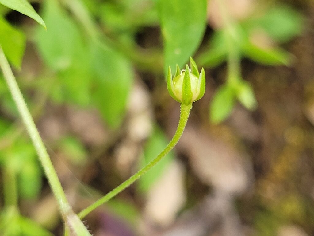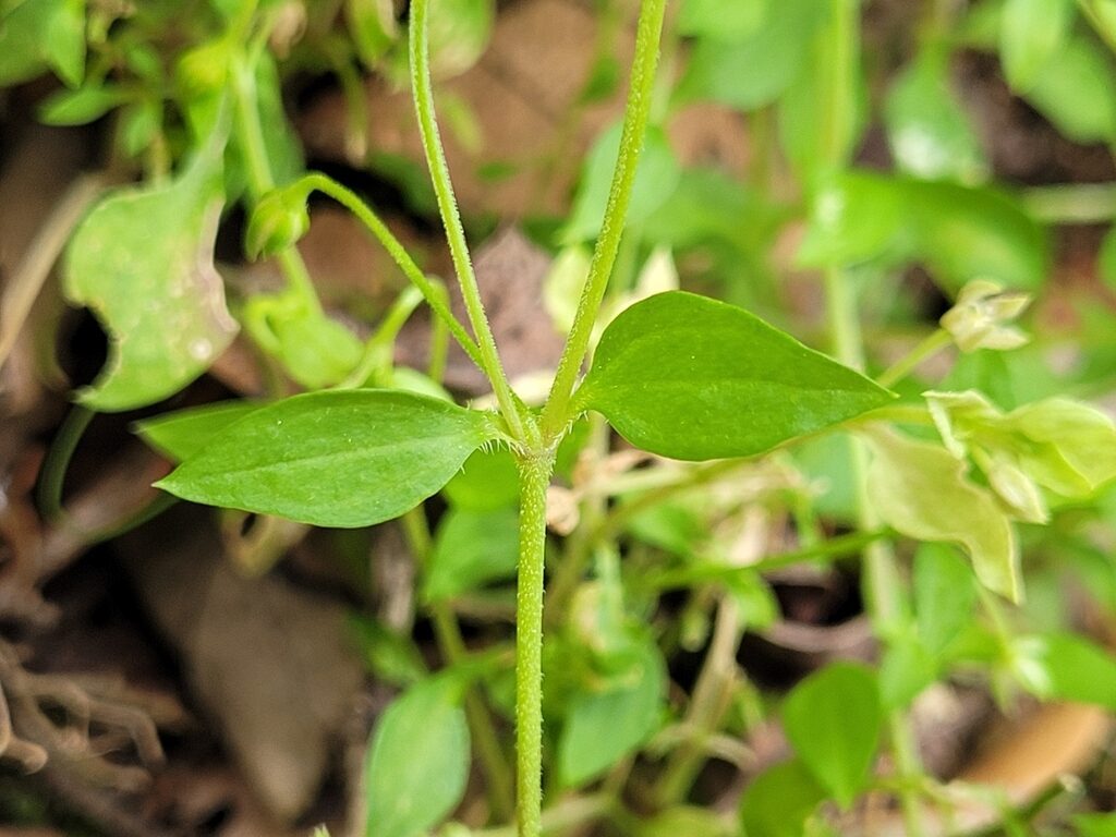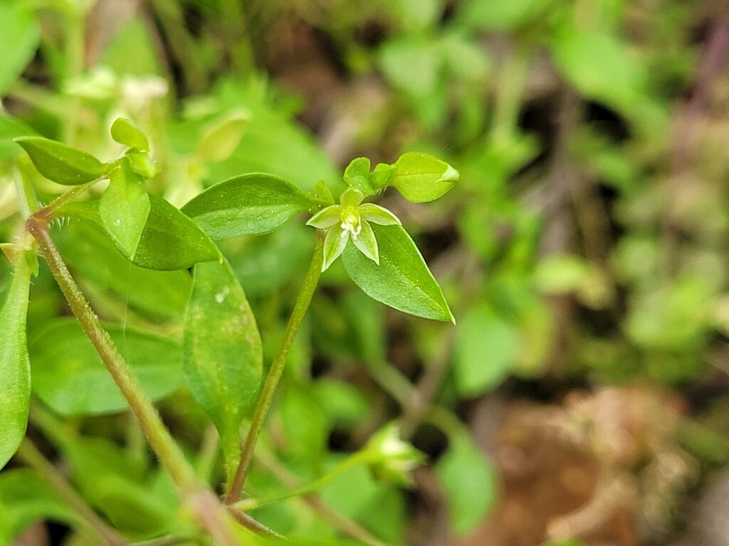 És una herba anual de 5-15 cm, prostrada o ascendent i amb les tiges pubescents. Les fulles són oposades, ovades i amb l’àpex agut, les inferiors, peciolades i les superiors, subsèssils. Les flors són solitàries, axil·lars i llargament pedicel·lades; els sèpals de 2-4 mm tenen el marge amplament membranós i els nervis laterals poc visibles, i els pètals són rudimentaris o nuls. El fruit és una càpsula ovoide, més curta que el calze, dehiscent per 6 dents recurvades. Les granes són finament puntejades o rugoses.