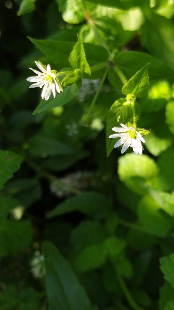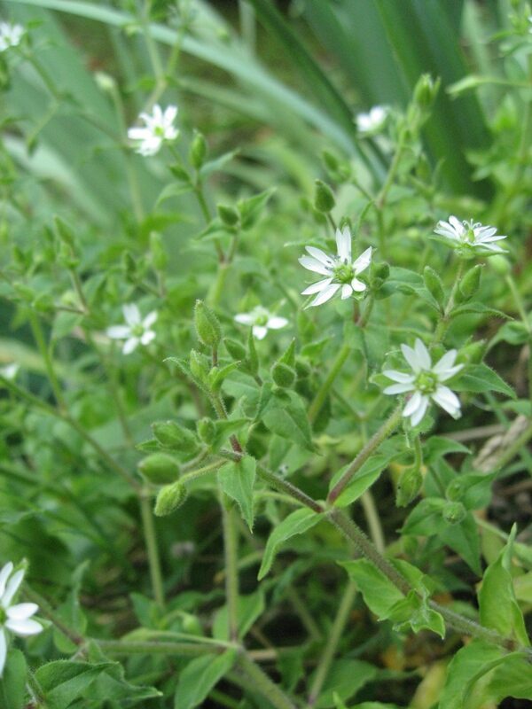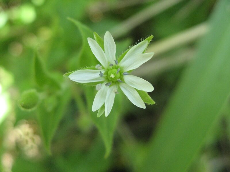 És una herba perenne de 20-100 cm, prostrada o ascendent, d’un verd clar i pubescent-glandulosa a la part superior. Les fulles són oposades, ovades, amb l’àpex agut i la base sovint cordada; les inferiors curtament peciolades i les superiors sovint sèssils. Les Inflorescències estan formades per un dicasi foliós lax. El calze té els sèpals pubescent-glandulosos, estretament ovats amb el marge escariós. La corol·té pètals blancs profundament bipartits amb els lòbuls divergents i 5 estils. El fruit és una càpsula ovoide, dehiscent per mitjà de 5 profundes dents bífides i sostinguda per un peduncle reflex.