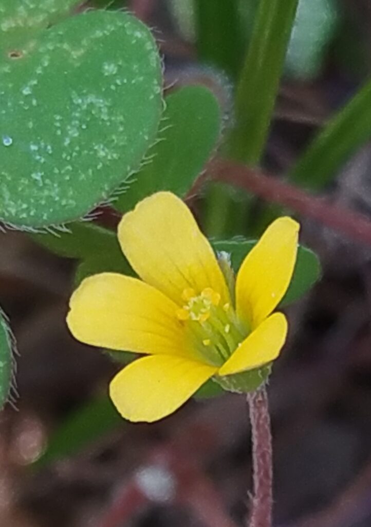 És una herba anual o perennant, de 10-30 cm i pubescent. Les tiges són prostrades o erectes, ramificades. Les fulles són peciolades, ± alternes i trifoliades amb els folíols obcordiformes i les estípules oblongues d’1-2 mm. Les inflorescències són axil·lars, umbel·liformes i llargament pedunculades amb 2-6 flors i sèpals ovato-lanceolats i pilosos. Les flors tenen la corol·la amb pètals grocs i estries ataronjades. El fruit és una càpsula subcilíndrica de secció pentagonal amb el pedicel reflex, rarament patent. Les granes són marronoses i el·lipsoides, comprimides amb deu costes transversals.