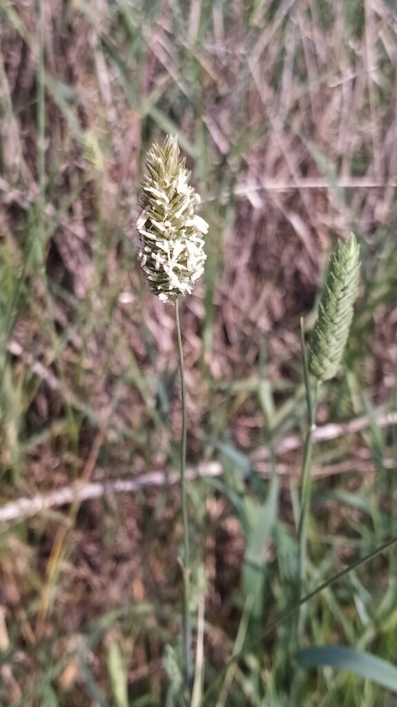 És una herba perenne de 100-180 cm, ± tuberosa, glabra amb tiges erectes i estriades. Les fulles, de 20-50 cm de longitud, són planes amb la beina superior poc inflada i la lígula de 6-7 mm, membranàcia, obtusa i truncada o dividida profundament. la inflorescència en panícula oblongo-cilíndrica té 5-12 cm de longitud. Les espiguetes són totes fèrtils, amb glumes lanceolades, agudes i amb una ala de 0,3-0,6 mm d’amplada. Un lemma fèrtil d’uns 4 mm i 1 lemma estèril que no supera 1/3 del lemma fèrtil.