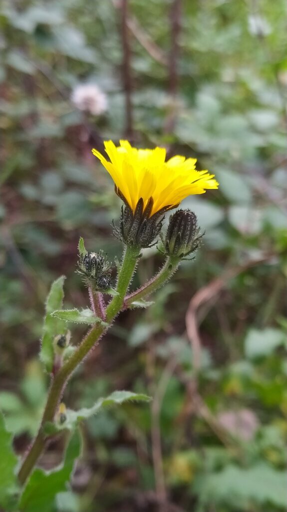 És una herba biennal o perenne de 15-100 cm, erecta, híspida i amb les tiges en general ramificades i folioses. Té les fulles oblongues, irregularment dentades o pinnatífides, rarament amb divisions més profundes, les inferiors peciolades i les superiors, curtament peciolades o sèssils i ± amplexicaules. Té nombrosos capítols agrupats ordinàriament en corimbe irregular amb les bràctees involucrals externes ± patents o recorbades i les flors grogues i totes ligulades. Els fruits són aquenis ovoides o subcilíndrics amb bec molt curt o sense i el papus plomós.