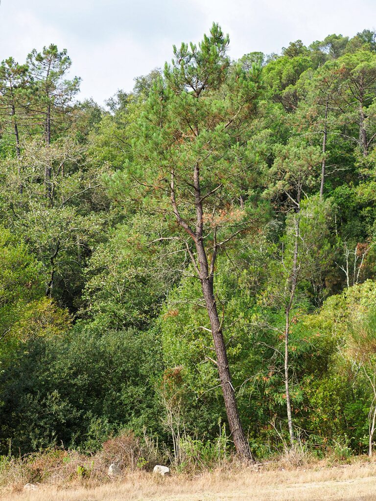 - Abundància al municipi: és força present a la part inferior i mitjana on ha estat plantat en terres deixades de conrear, a causa del creixement ràpid i el tronc ben recte. –