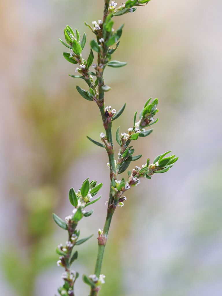 És una herba anual de 5-80 cm, repent o erecta, ± ramificada, de vegades feblement lignificada a la base. Les fulles són oblongo-lanceolades, subagudes i de 20-50 mm de longitud, les de les tiges principals molt més grans que les de les ramificacions secundàries. L’òcrea és curta i a la fi laciniada. Les flors són d’un verd blanquinós o rosaci en grups de 2-5, subsèssils i axil·lars; la llargada dels segments del periant és superior a la del tub. El fruit de 2,5-3,5 mm, mat, negrós i inclòs dins el periant.
