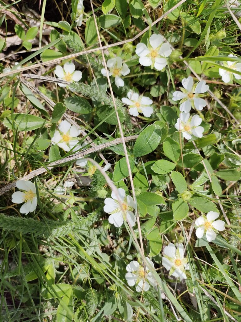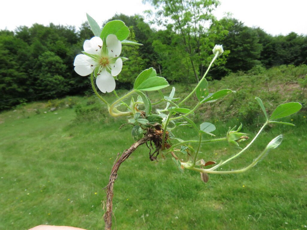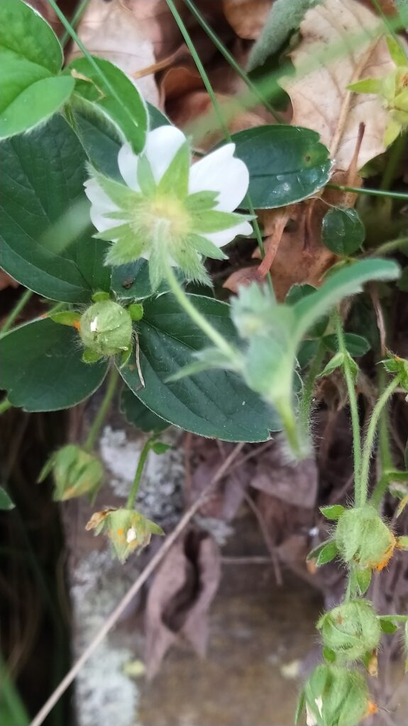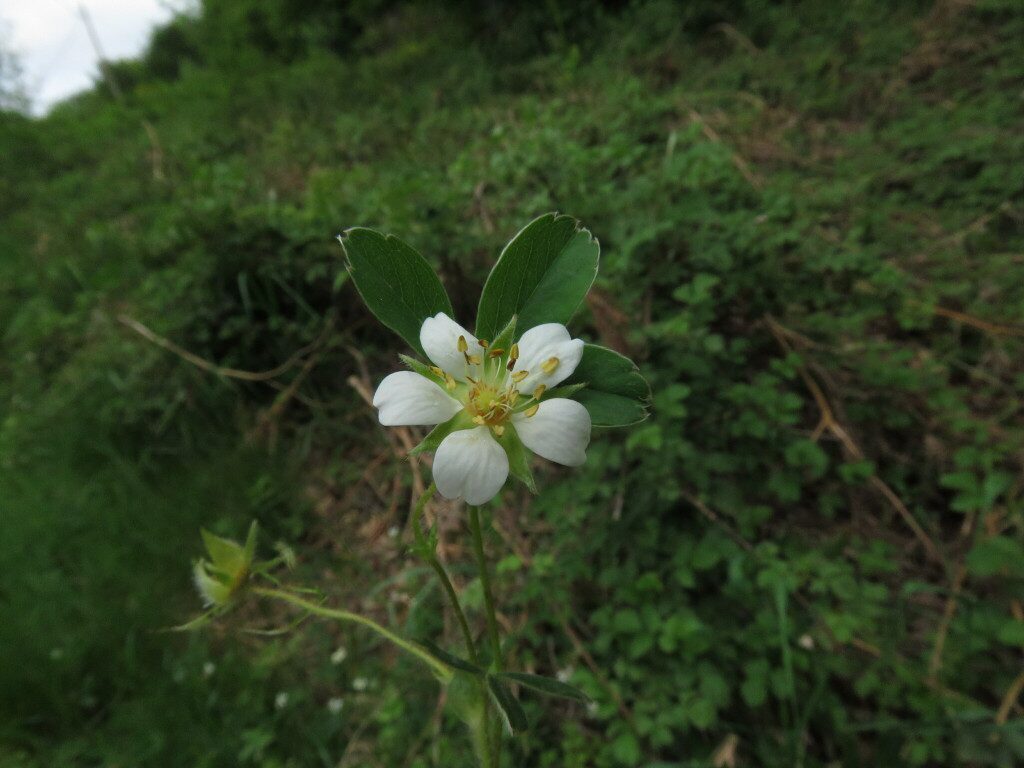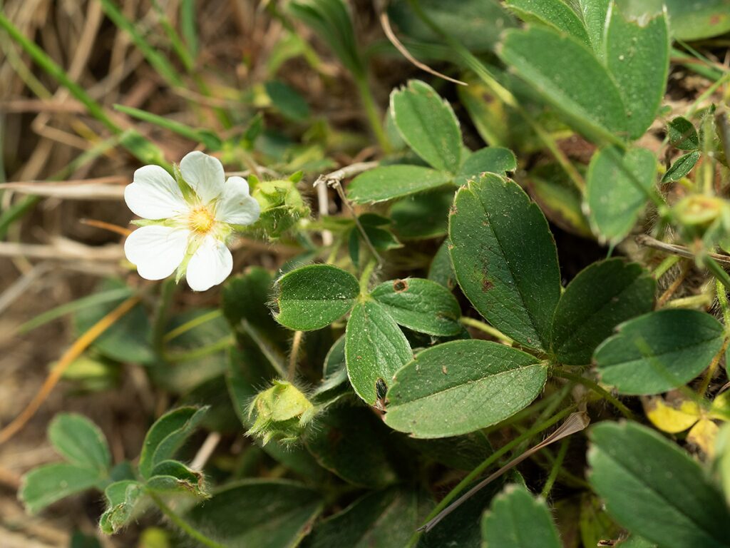 És una herba perenne, de 5-20 cm, amb llargs estolons. Té les fulles llargament peciolades amb tres folíols ovato-oblongs, verds, glabres o feblement pilosos per l’anvers i pilosos-sedosos pel revers, i de contorn dentat només a la part apical amb 5-7 dents. Les tiges floríferes són aproximadament tan llargues com les fulles de la base, ascendents i amb 1-4 flors. Les flors tenen el calze de 5 sèpals més o menys triangulars, un calicle de cinc segments lanceolats més o menys tan llargs com els sèpals i 5 pètals de color blanc, patents, en forma de cor, amb la base més ampla a l’àpex i lleugerament emarginats. Els fruits són núcules llises, amplament ovoides o en forma de pera. És semblant a la maduixera (Fragaria vesca); se’n separa d’aquesta pels folíols amb dents només a la meitat superior i els fruits són molt diferents, res a veure amb la maduixa.