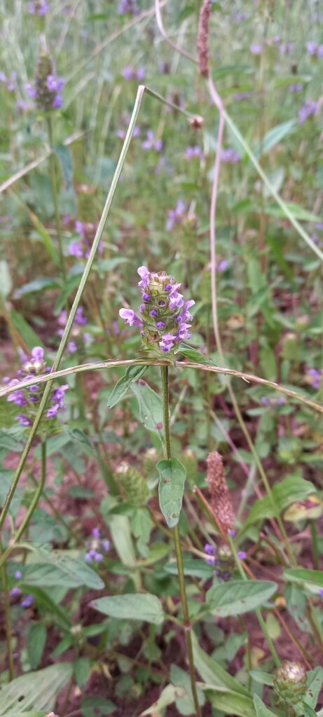 És una herba perenne de 5-50 cm, erecta o ascendent, rizomatosa i a vegades ± ramificada. La tija és radicant i amb pilositat dispersa, més abundant a la part superior. Les fulles tenen un pecíol de 5 a 60 mm, el limbe ovat i de contorn enter o lleugerament crenat, les dues superiors pròximes a la base de la inflorescència i les inferiors en roseta. La inflorescència és normalment cilíndrica, amb 4-11 verticil·lastres, bràctees de color púrpura amplament ovades, acuminades, amb la nervadura reticulada, piloses per l’anvers i el marge ciliat; el calze és bilabiat i de 7-9 mm i la corol·la d’un blau violaci, de 13-15 mm i amb el tub dret.