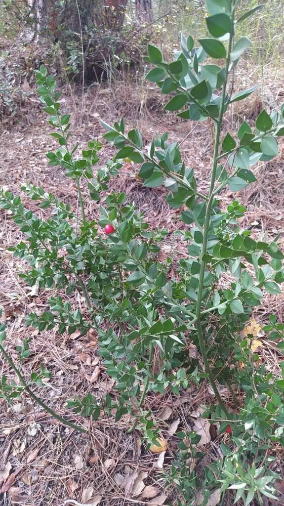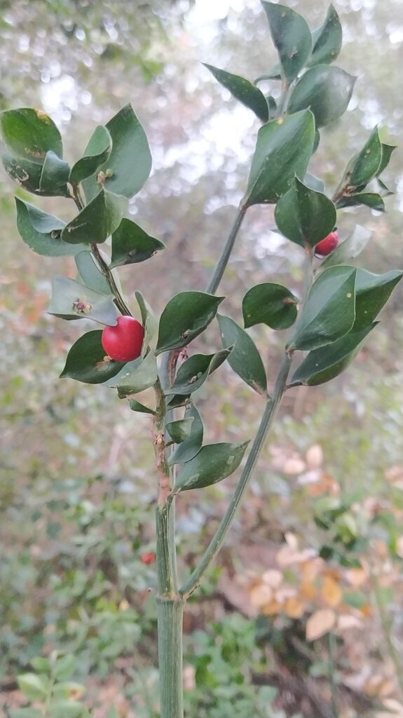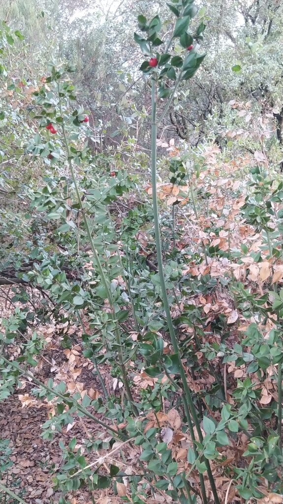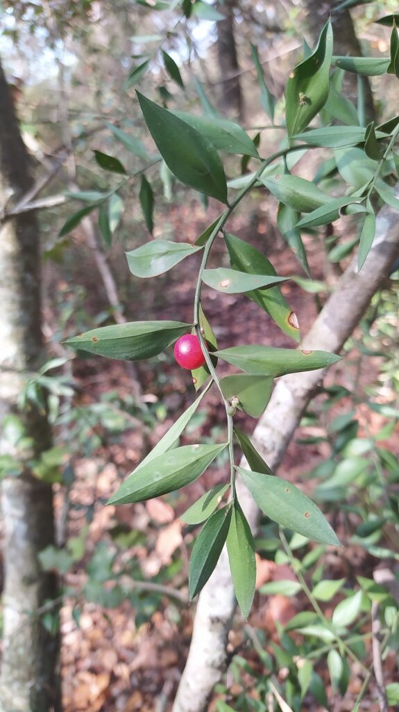 És una planta una mica llenyosa que sol fer entre els 20 i 80 cm d’alçada i pot arribar fins als 150 cm. Té les tiges dretes i molt ramificades. Es caracteritza per disposar d’unes peces anomenades cladodis, d’aspecte semblant a les fulles, que en realitat corresponen a un aplanament de la tija. Les fulles són difícils d’observar ja que cauen molt aviat; neixen a l’axil·la dels cladodis. A principis d’any (febrer-març) en la part superior i aproximadament en el centre dels cladodis apareixen les flors, normalment d’una en una, encara que també es poden agrupar de dues en dues. Cada una de les flors són d’un sol sexe i en uns peus normalment totes les flors són masculines i en altres totes femenines. El periant està format per dos grups de 3 peces de color verdós, anomenades tèpals. Per la tardor, en els peus amb flors femenines, es troben els fruits, que tenen forma de baia, de color vermellós, d’uns 10-12 mm de diàmetre i contenen dues granes.