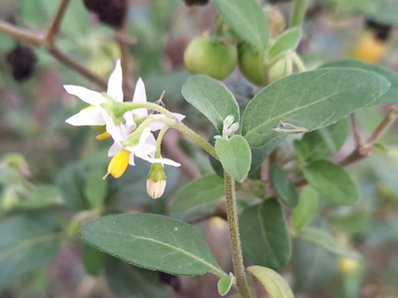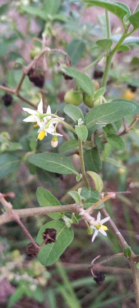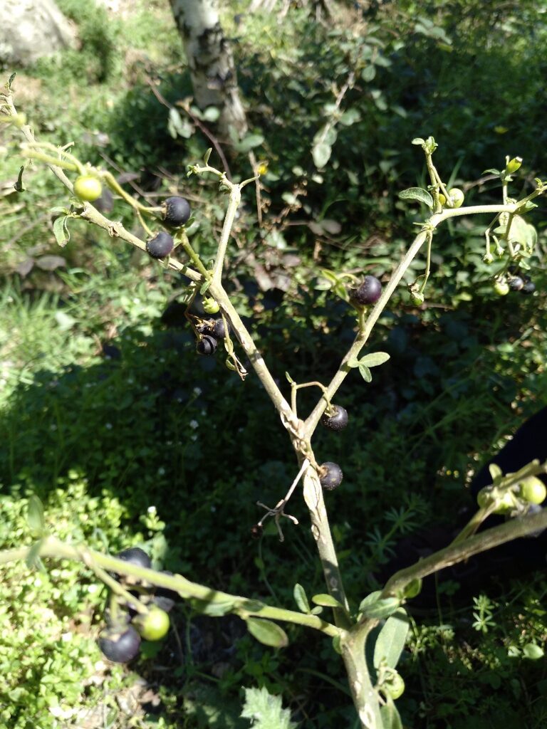És una herba perenne de 10-100 cm, erecta i fortament lignificada. Les fulles són peciolades, amb el limbe ovato-lanceolat o lanceolat, l’àpex agut i el contorn enter o poc dividit. Les flors s’agrupen en cimes pedunculades de 5-10 flors. Els peduncles a la fructificació són normalment reflexos. El calze és lleugerament acrescent amb el tub més llarg que els lòbuls. La corol·la és rotàcia, blanca o ± tenyida de violaci. L’estil és llargament exsert. Els fruits són baies subglobuloses de color violaci o negrós.