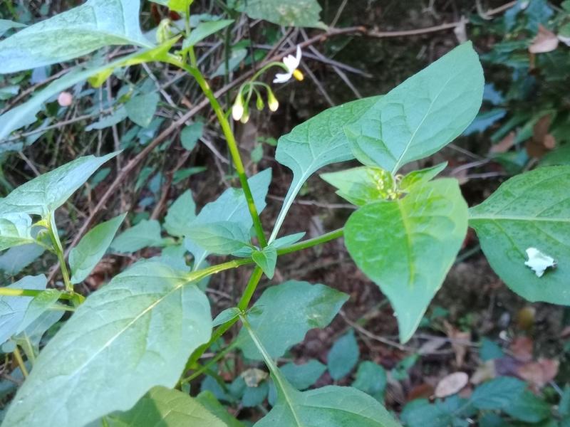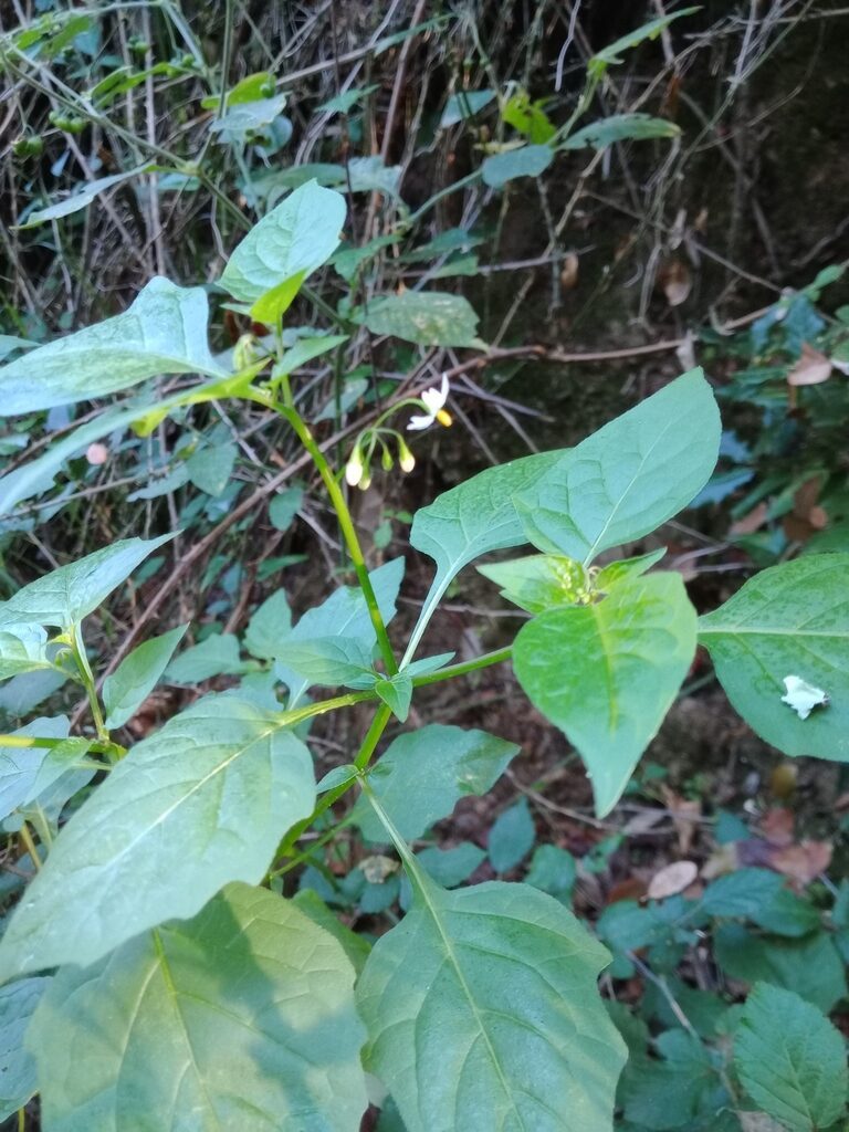 És una herba anual de 10-60 cm, erecta o decumbent i ramificada amb la base poc lignificada. Té les fulles peciolades amb el limbe ovato-ròmbic o ovato-lanceolat, l’àpex agut o acuminat i el contorn variable d’enter a sinuato-dentat. Les flors s’agrupen en cimes pedunculades de 3-10 flors. El peduncle, de 14-30 mm, és erecto-patent i els pedicels fructífers reflexos. El calze és lleugerament acrescent, campanulat i amb el tub més llarg que els lòbuls. La corol·la és blanca i de 8-16 mm de diàmetre i l’estil curtament exsert. Els fruits són en baia globulosa ordinàriament negra.