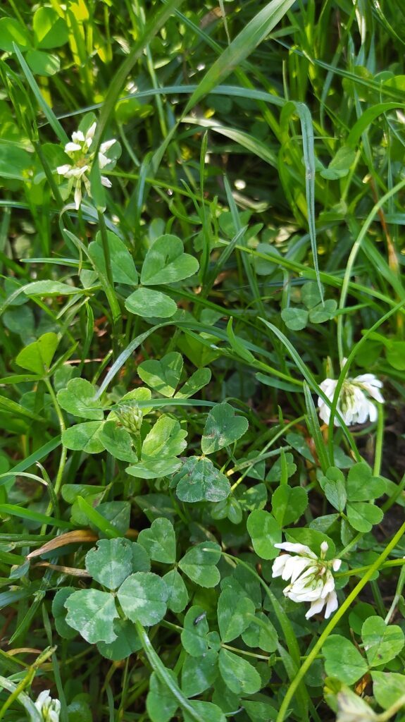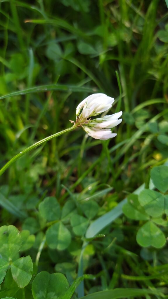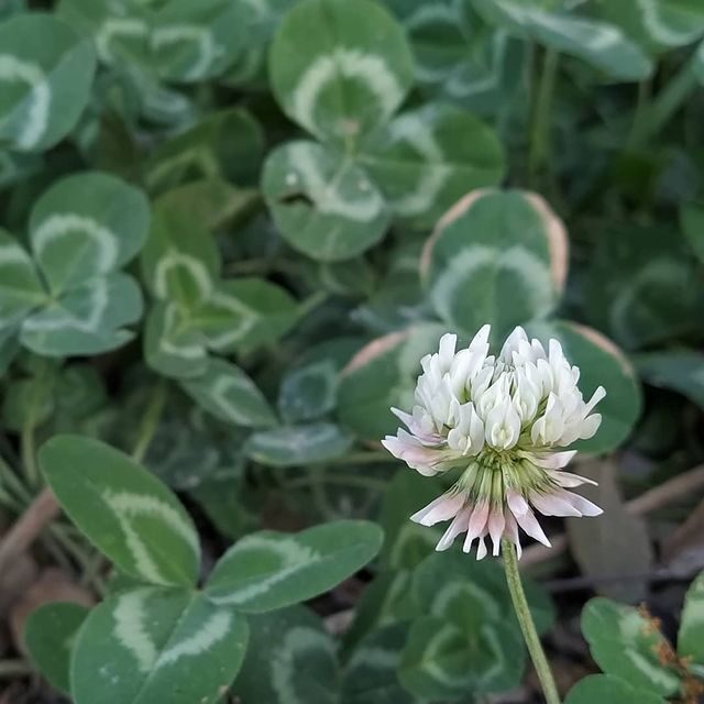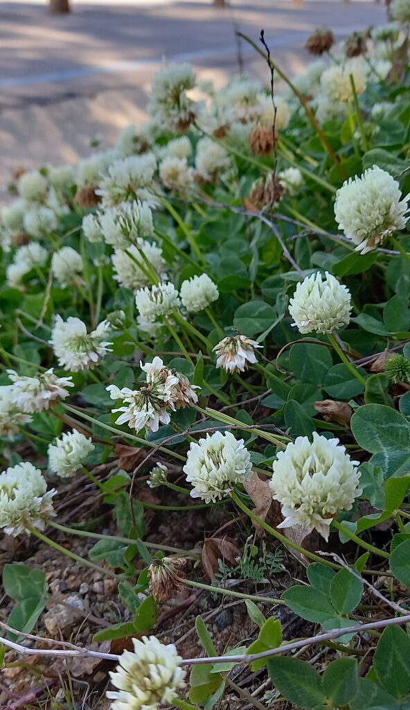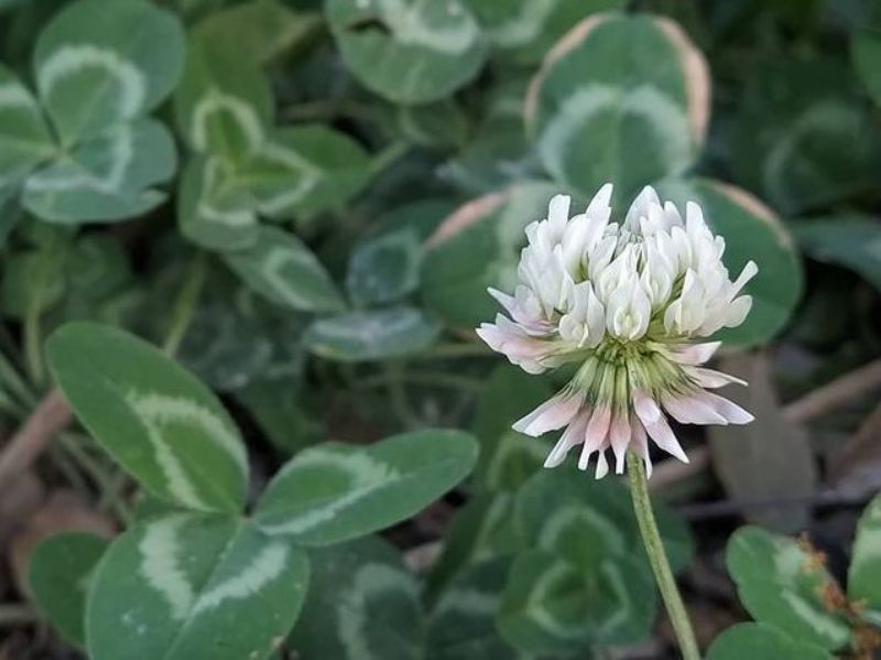 És una herba perenne de 10-40 cm, glabrescent, amb les tiges llargues, repents, estoloniformes i radicants. Les fulles són llargament peciolades amb els folíols obovatoel·líptics, denticulats i sovint amb taques blanques o negroses. Les estípules són escarioses, soldades en tub, ovades i acuminades. Les inflorescències són glomèruls esferoïdals multiflors siituats damunt de peduncles tan llargs com els pecíols de les fulles o més. Les flors, de velles són reflexes. El calze té les dents desiguals, triangulars o lanceolades; els pedicels són llargs, de 4-10 mm de longitud i la corol·la és blanca o d’un blanc-rosaci.