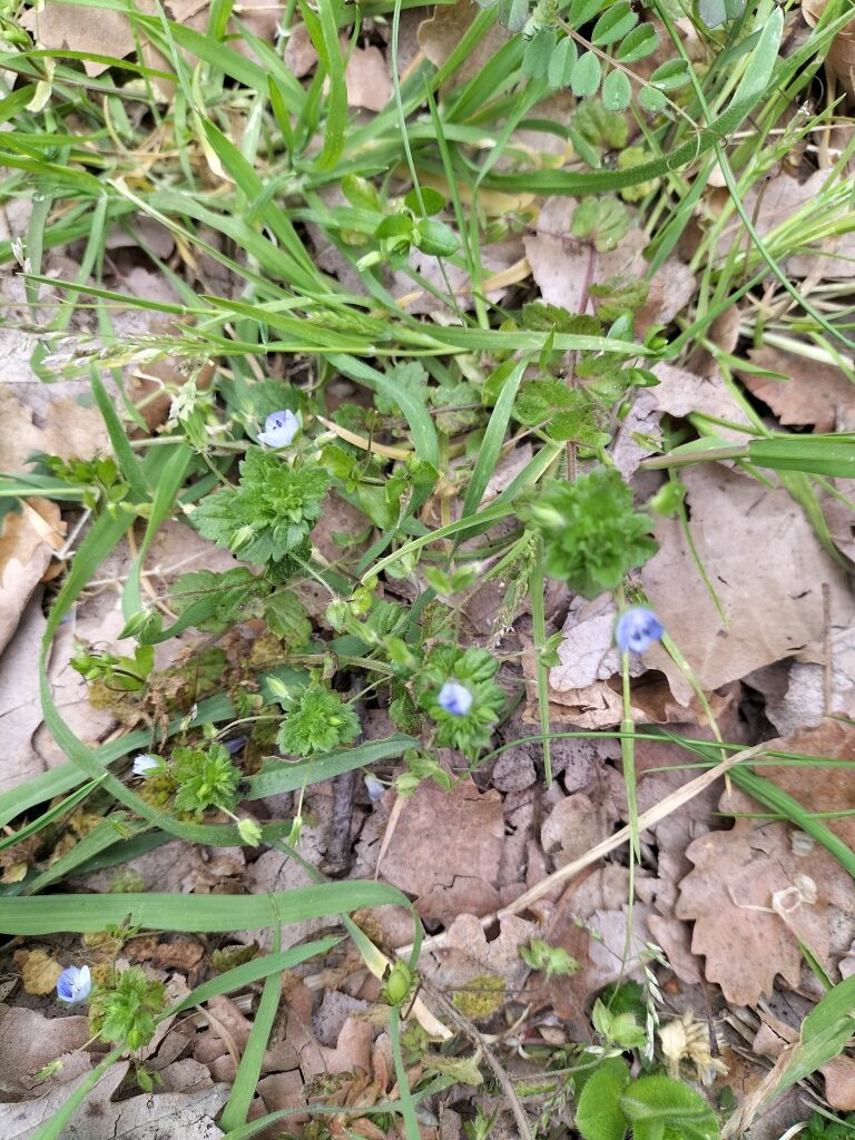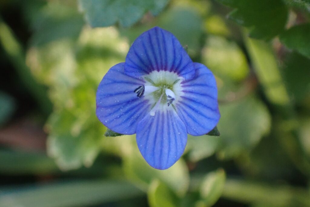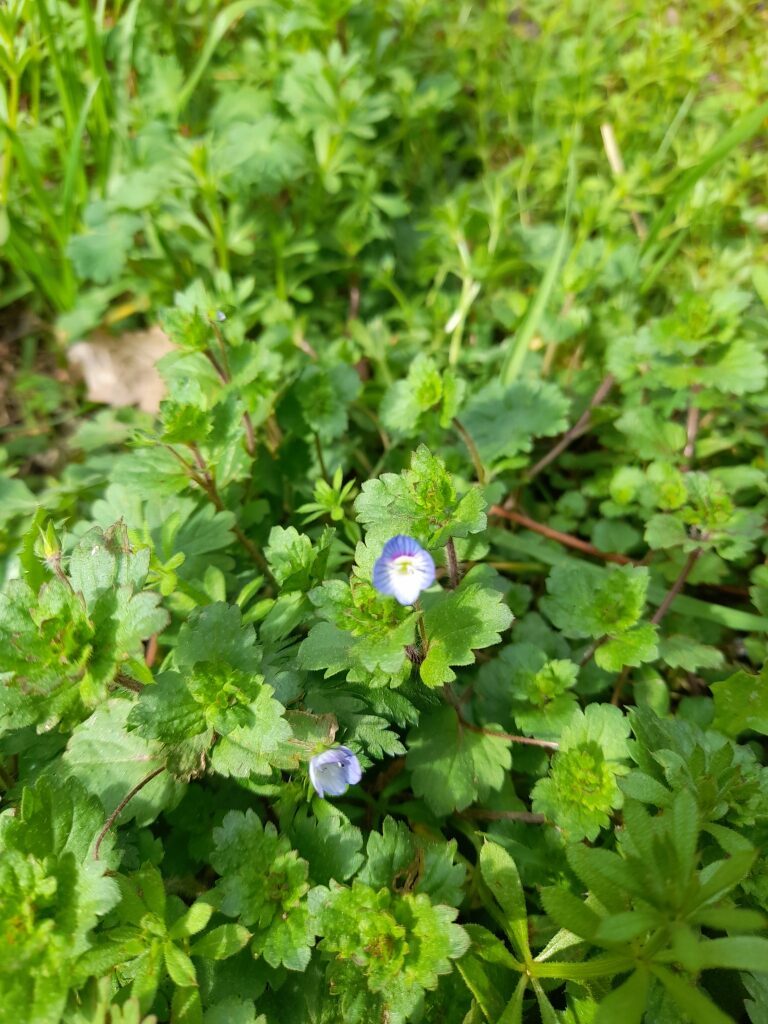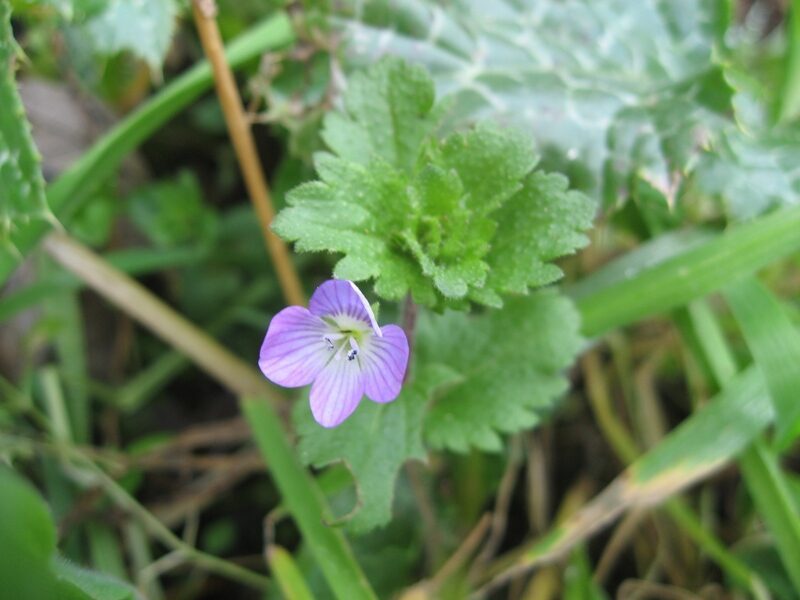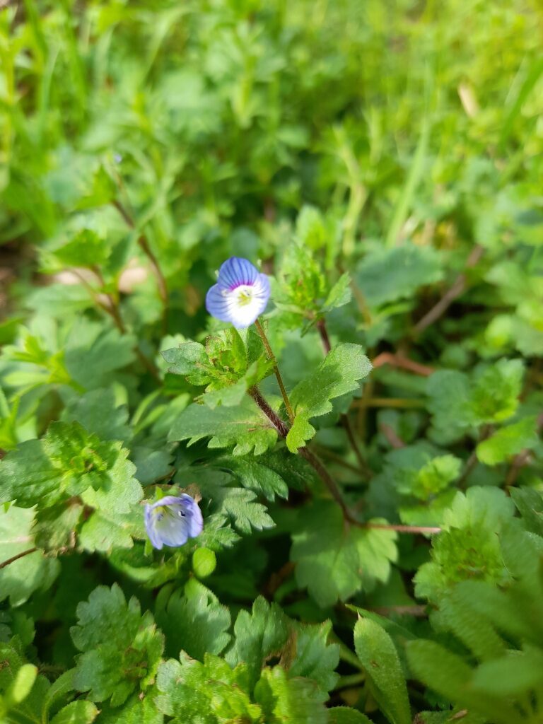 És una herba anual de 10-40 cm, decumbent o ascendent, més o menys ramificada i laxament pubescent. Les fulles tenen una tendència pinnada, sovint alternes amb pecíols de 2-8 mm, el limbe ovat, de contorn amb dents grosses i amb pèls dispersos per les dues cares. Les flors són axil·lars, solitàries damunt de peduncles prims i arcuats, de 5-30 mm, que sobrepassen llargament les fulles bracteals; el calze, de 4-10 mm, té els sèpals de 3-5 mm, la corol·la és d’un blau viu i de 8-12 mm de diàmetre i l’estil de 2-3,5 mm, que sobrepassa el sinus del fruit. La càpsula és més ampla que llarga i amb els dos lòbuls comprimits i divergents; les granes, d’1-2,5 mm, són grogues..
