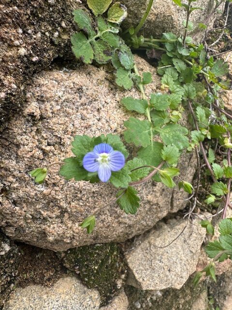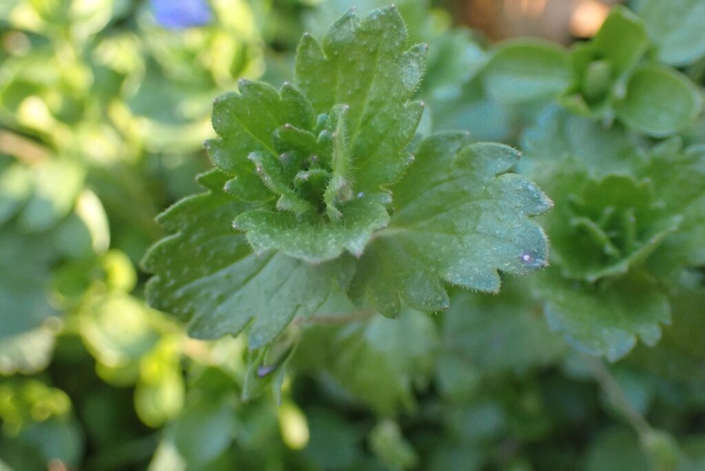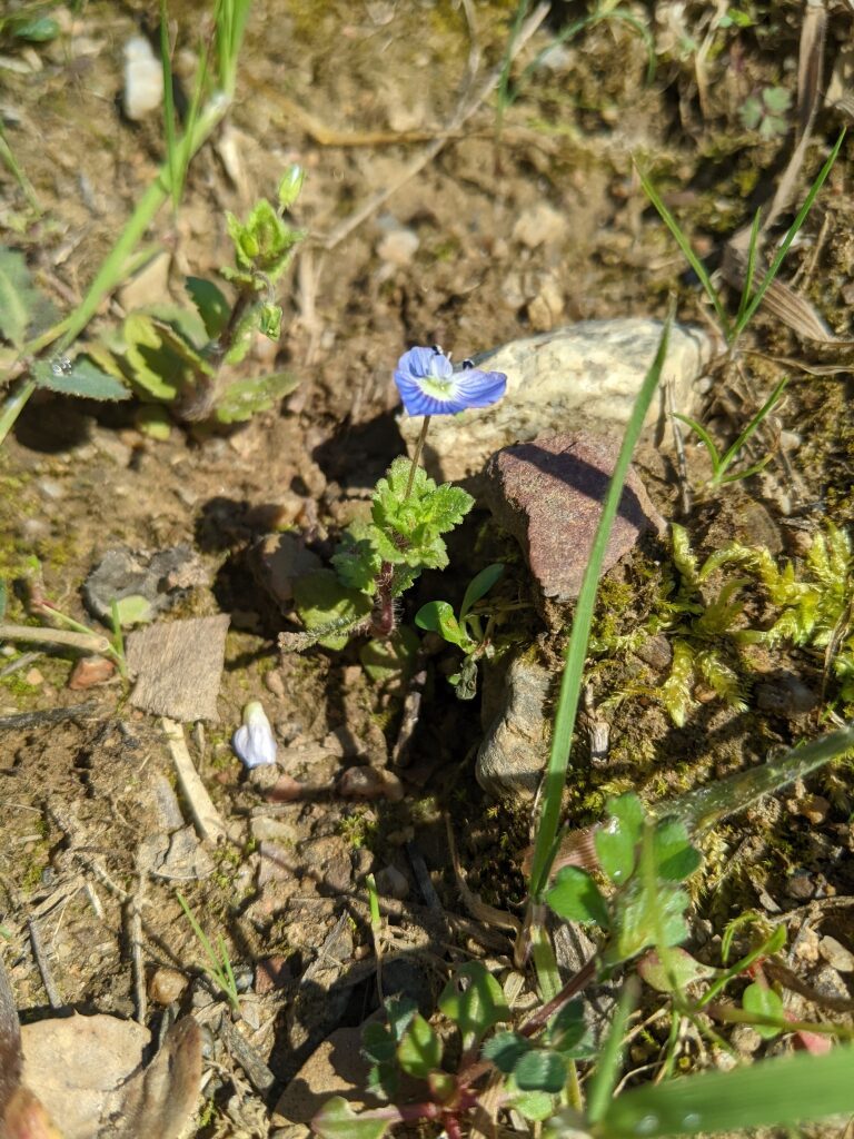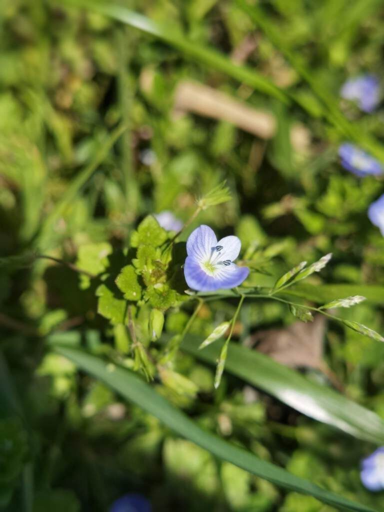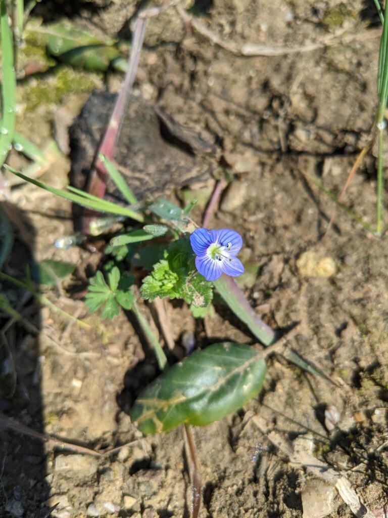 És una herba anual de 10-40 cm, decumbent o ascendent, més o menys ramificada i laxament pubescent. Les fulles tenen una tendència pinnada, sovint alternes amb pecíols de 2-8 mm, el limbe ovat, de contorn amb dents grosses i amb pèls dispersos per les dues cares. Les flors són axil·lars, solitàries damunt de peduncles prims i arcuats, de 5-30 mm, que sobrepassen llargament les fulles bracteals; el calze, de 4-10 mm, té els sèpals de 3-5 mm, la corol·la és d’un blau viu i de 8-12 mm de diàmetre i l’estil de 2-3,5 mm, que sobrepassa el sinus del fruit. La càpsula és més ampla que llarga i amb els dos lòbuls comprimits i divergents; les granes, d’1-2,5 mm, són grogues..